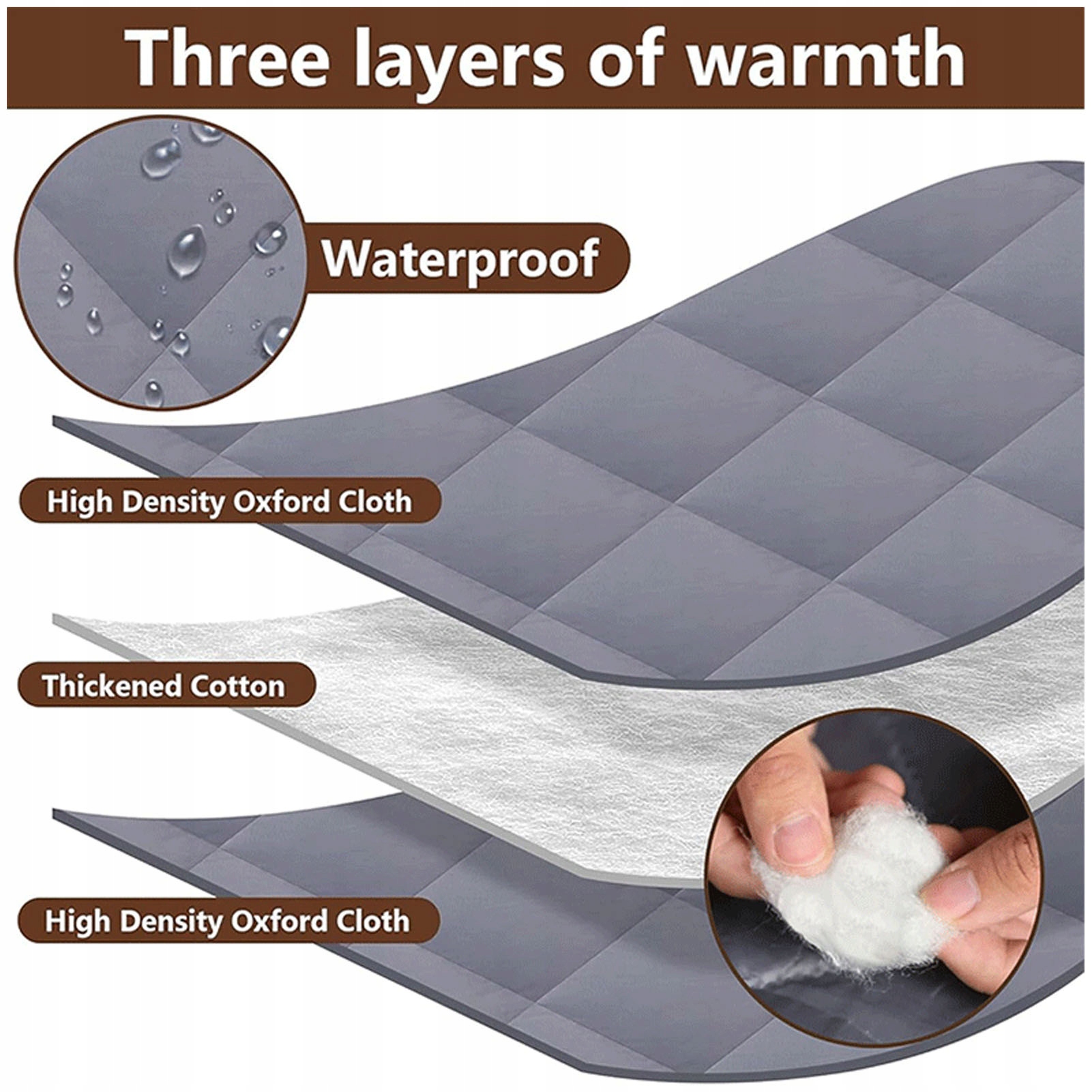 2. Премиальная материя: принимает трехчастотную конструкцию теплоизоляции, которая представляет собой ткань с высокой плотностью Оксфорд, Буффало и Оксфордская ткань, которая является безопасной, надежной и обладает хорошим эффектом тепловой изоляции.