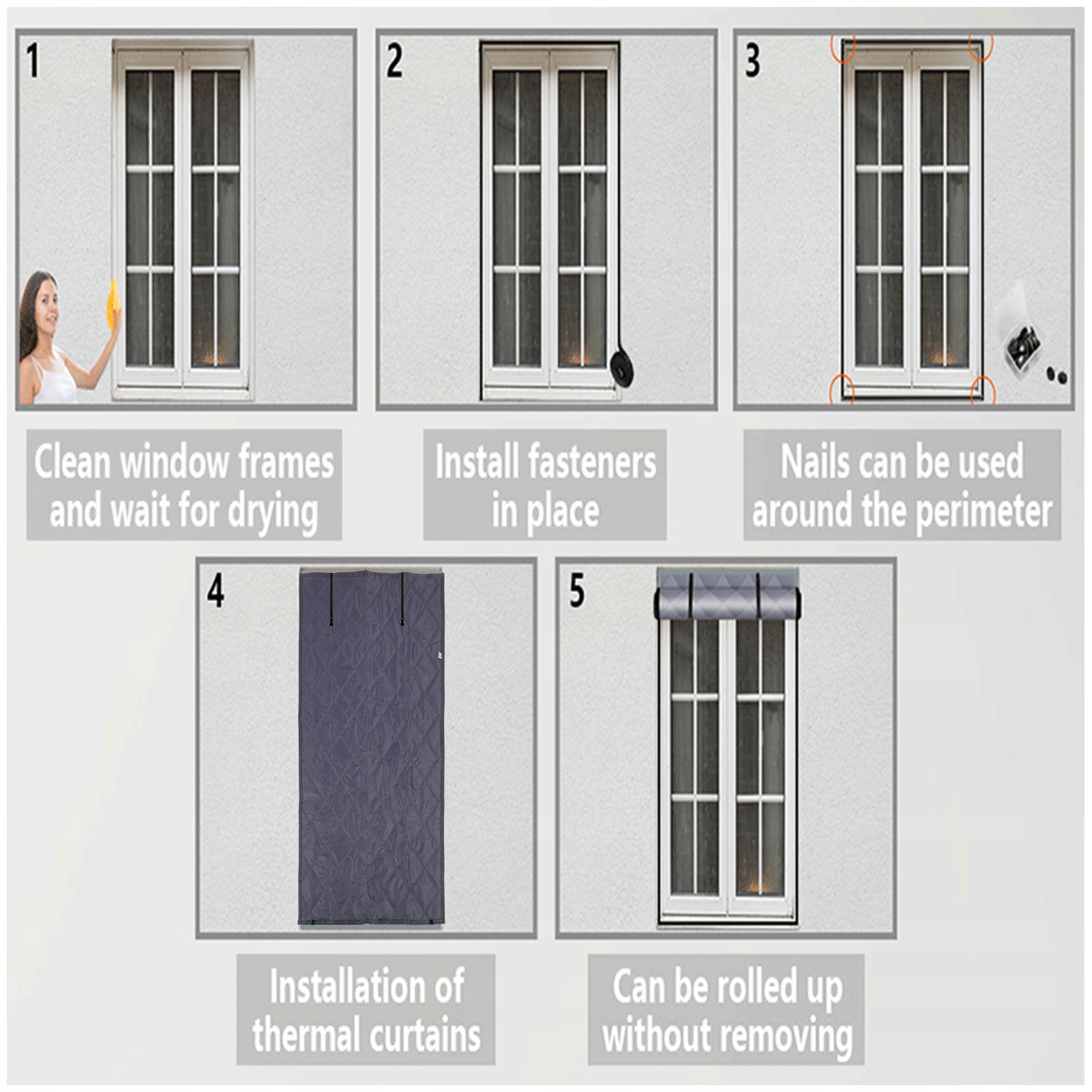 4. Лето, зимнее применение: зима, покрывающая изоляцию окна, может быть хорошо запечатана вокруг окна, чтобы не потерять тело в комнатах и экономить энергию. Летом его также можно использовать в качестве изолированного, подходящего для гостиной, кухни, чердака и т. Д.