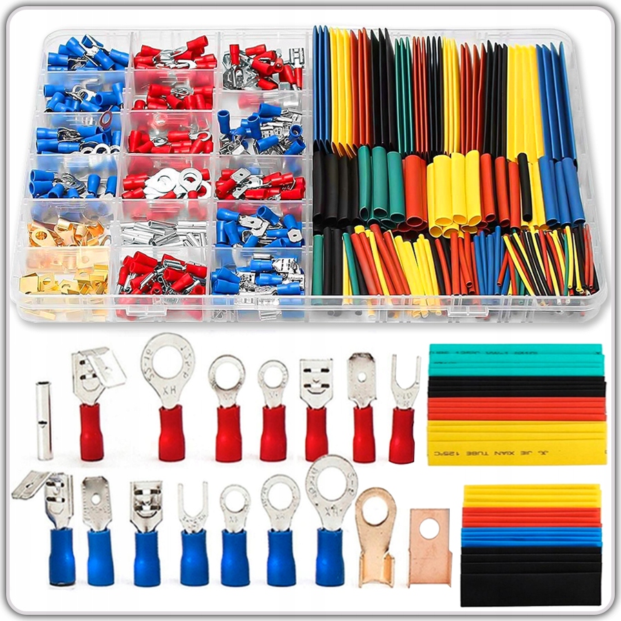 ТЕРМОУСАДОЧНЫЕ ТРУБКИ ИЗОЛИРОВАННЫЕ СОЕДИНИТЕЛИ БОЛЬШОЙ НАБОР XXL 678 ШТ.