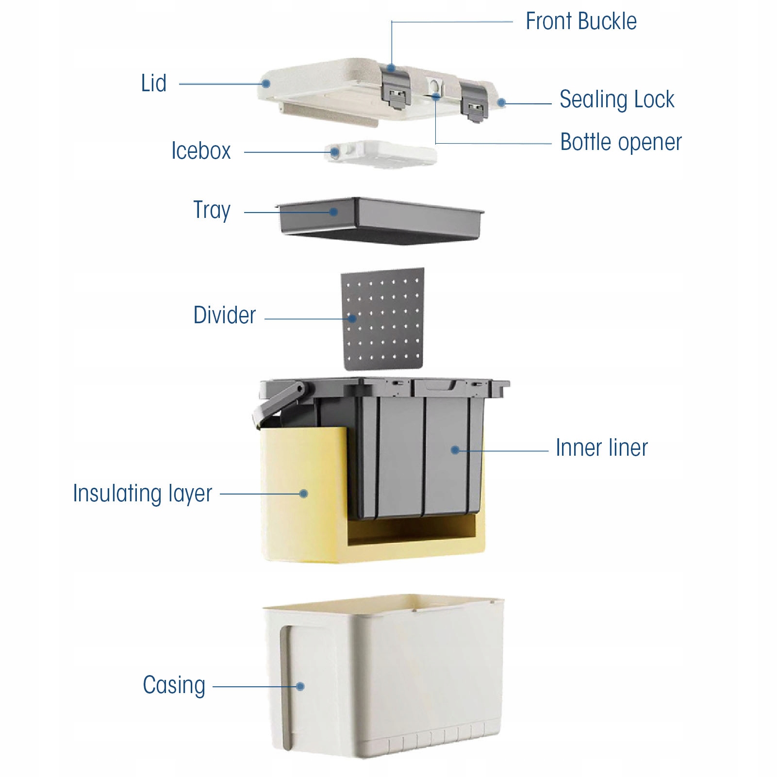 2. ИЗОЛЯЦИОННЫЙ СЛОЙ: Внутри находится изолирующий слой из пенополиуретана высокой плотности, который сохраняет еду и напитки при более низкой и высокой температуре, обеспечивая отличный изоляционный эффект.