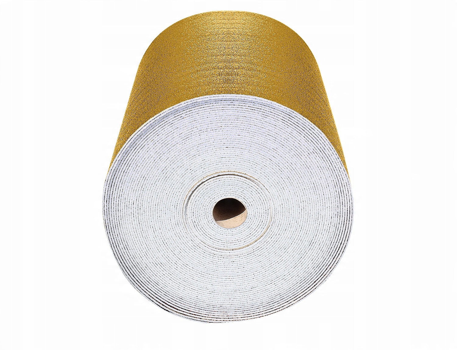 Трехслойный тонкостенный теплоизоляционный экран из вспененного полиэтилена с закрытоячеистой структурой, покрытый с обеих сторон высокоэффективной светоотражающей золотой металлизированной фольгой.