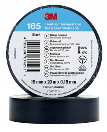 Ізоляційна стрічка 19мм х 20м ПВХ Temflex 165 чорна 7100184800 3M