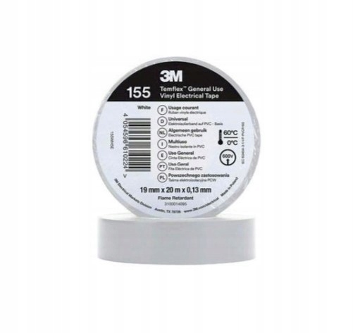 Лента изоляционная виниловая 19мм х 20м х 0,13 мм белая 3М Temflex 155