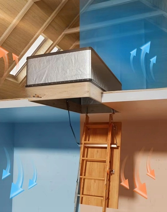 Эффективная теплоизоляционная крышка для чердака является отличным решением для восстановления теплового комфорта в каждом доме. Созданный из высококачественной двойной алюминиевой фольги , имеет блокировку , который удобным и эффективным способом позволяет ежедневное открытие и закрытие крышки.