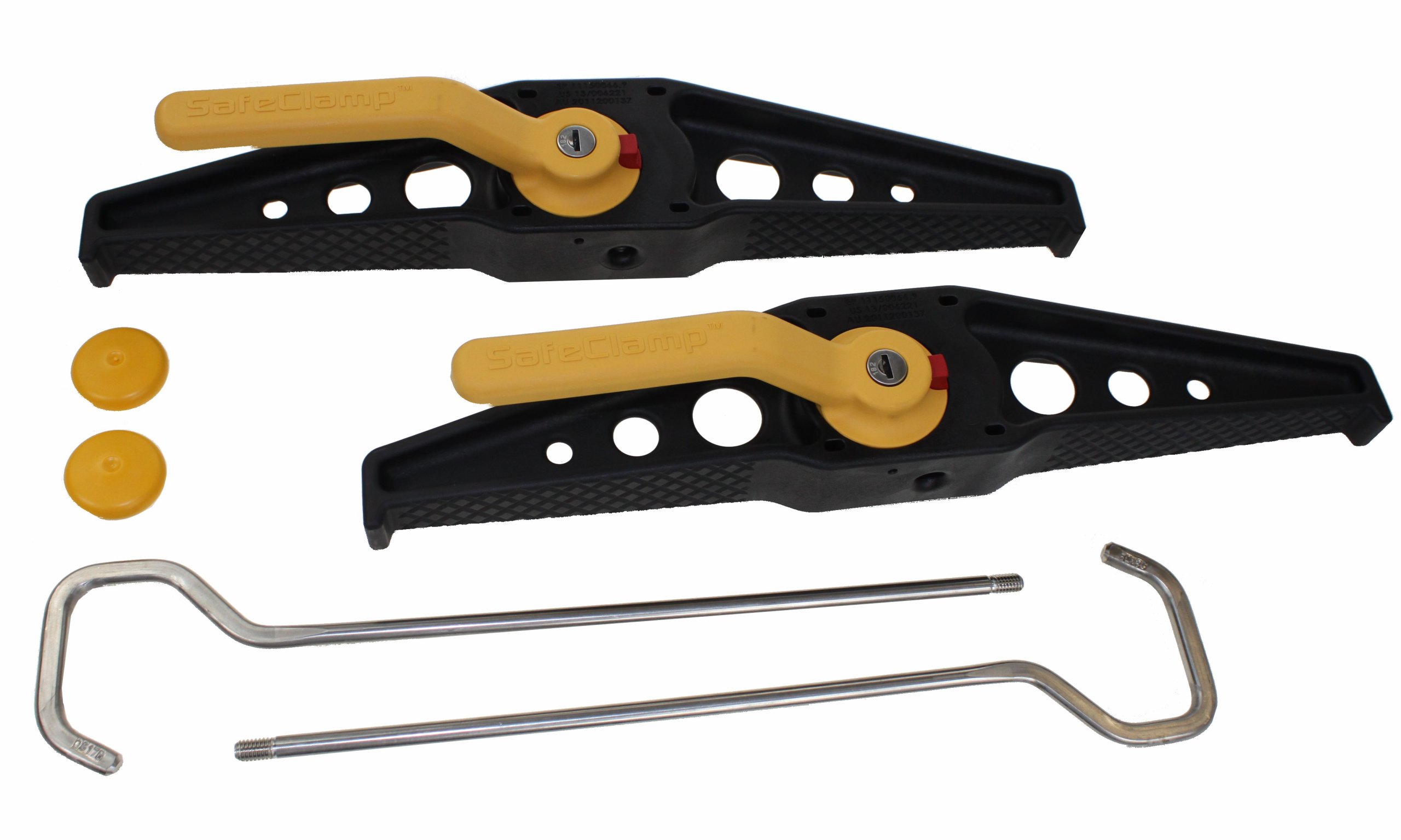 Зажимы для лестниц SafeClamp — прочное, простое в монтаже изделие, позволяющее беспроблемно и быстро установить лестницу на крышу любого легкового автомобиля и грузового фургона, что дополнительно фиксирует лестницу во время транспортировки. Изготовленные из очень прочных композитов с крючками из нержавеющей стали, они гарантируют длительный срок службы и устойчивость к коррозии. Инновационная система крепления, которая в 5 раз быстрее традиционных методов, доступных на рынке