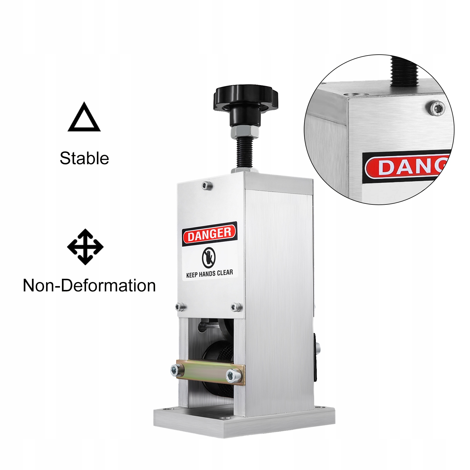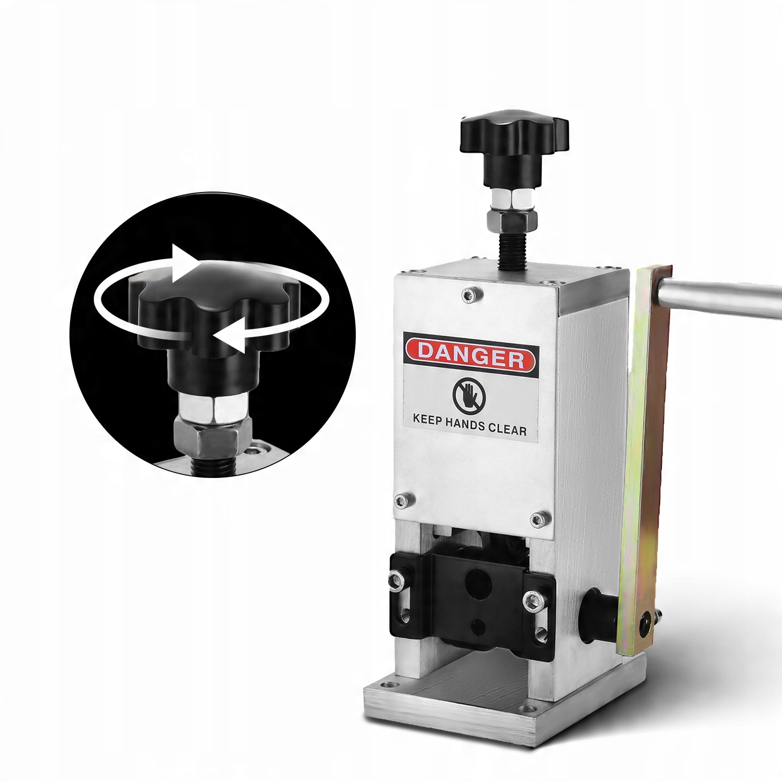 - Легко в использовании: на компьютере для загрузки изоляции есть регулируемое лезвие, панель питания и гайки, плавно и подходит для любой формы кабеля. Он легко устанавливается на любой скамейке или на рабочей станции.