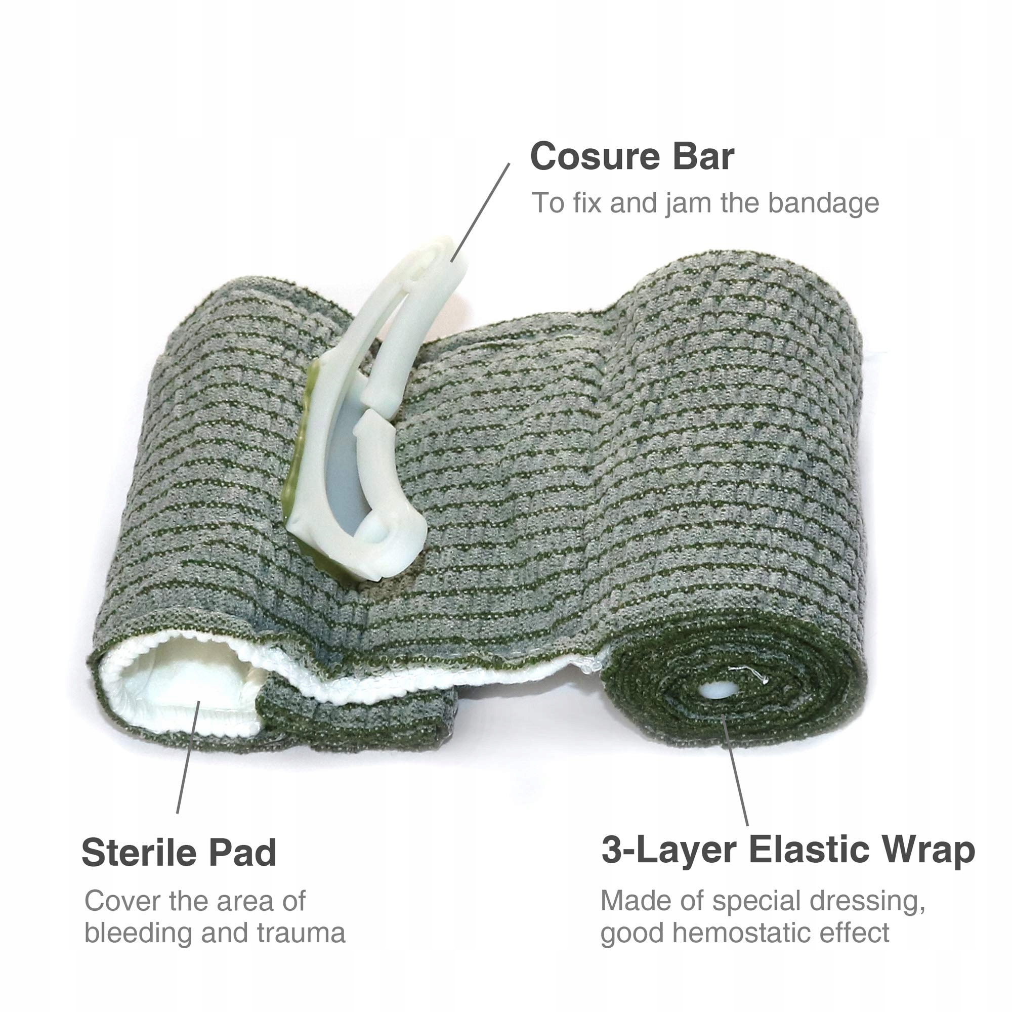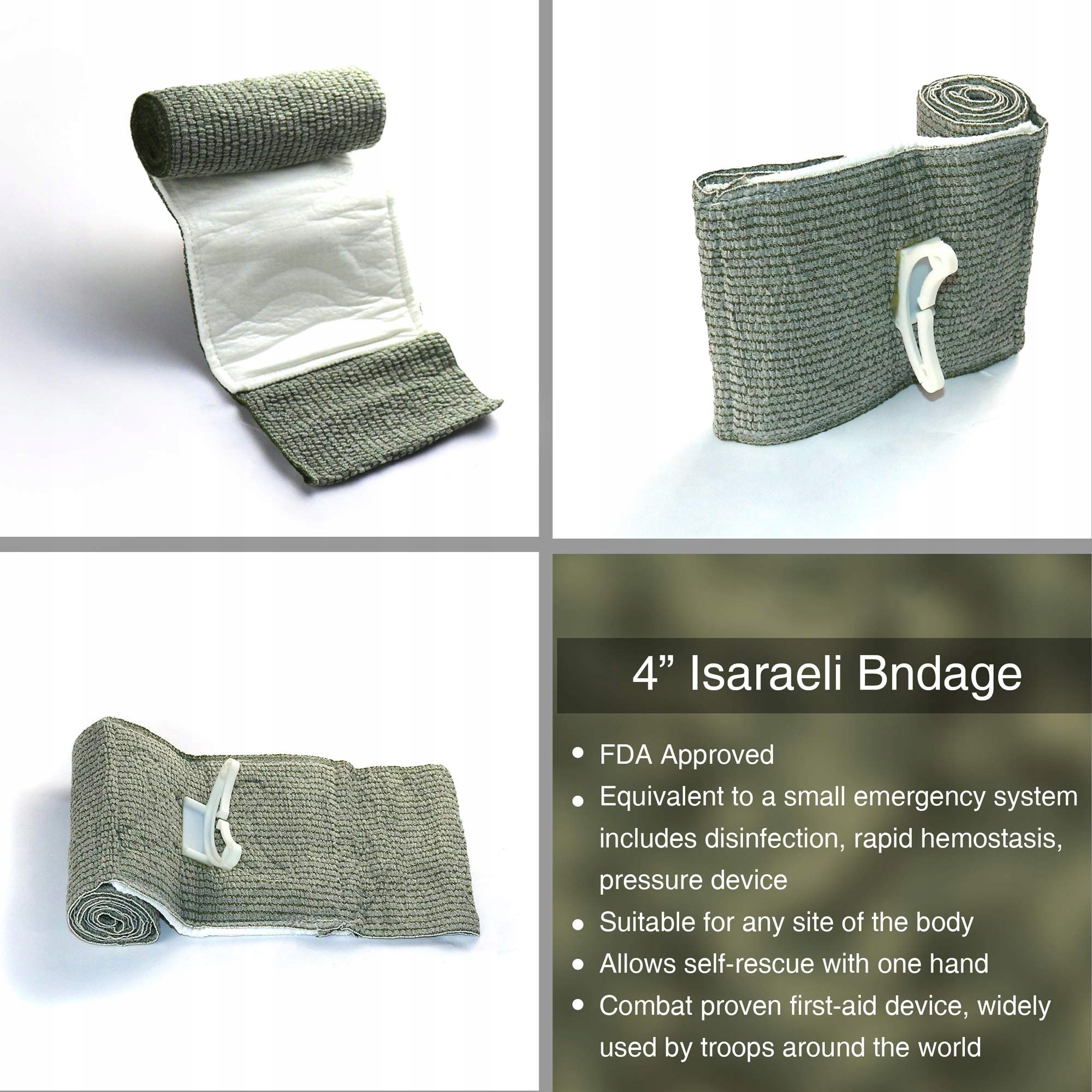 Израильская боевая повязка (IBD) намного превосходит конструкцию общей повязки для первой помощи, встроенной дезинфицирующей марли, быстрокровоостанавливающей повязки, встроенного устройства давления, соответствующего небольшой спасательной системе, широко используемой для выживания на открытом воздухе, Эту эластичную резинку с бинтом длиной 3,6 м можно использовать в качестве колец, шин и даже обычного жгута в экстренных случаях.