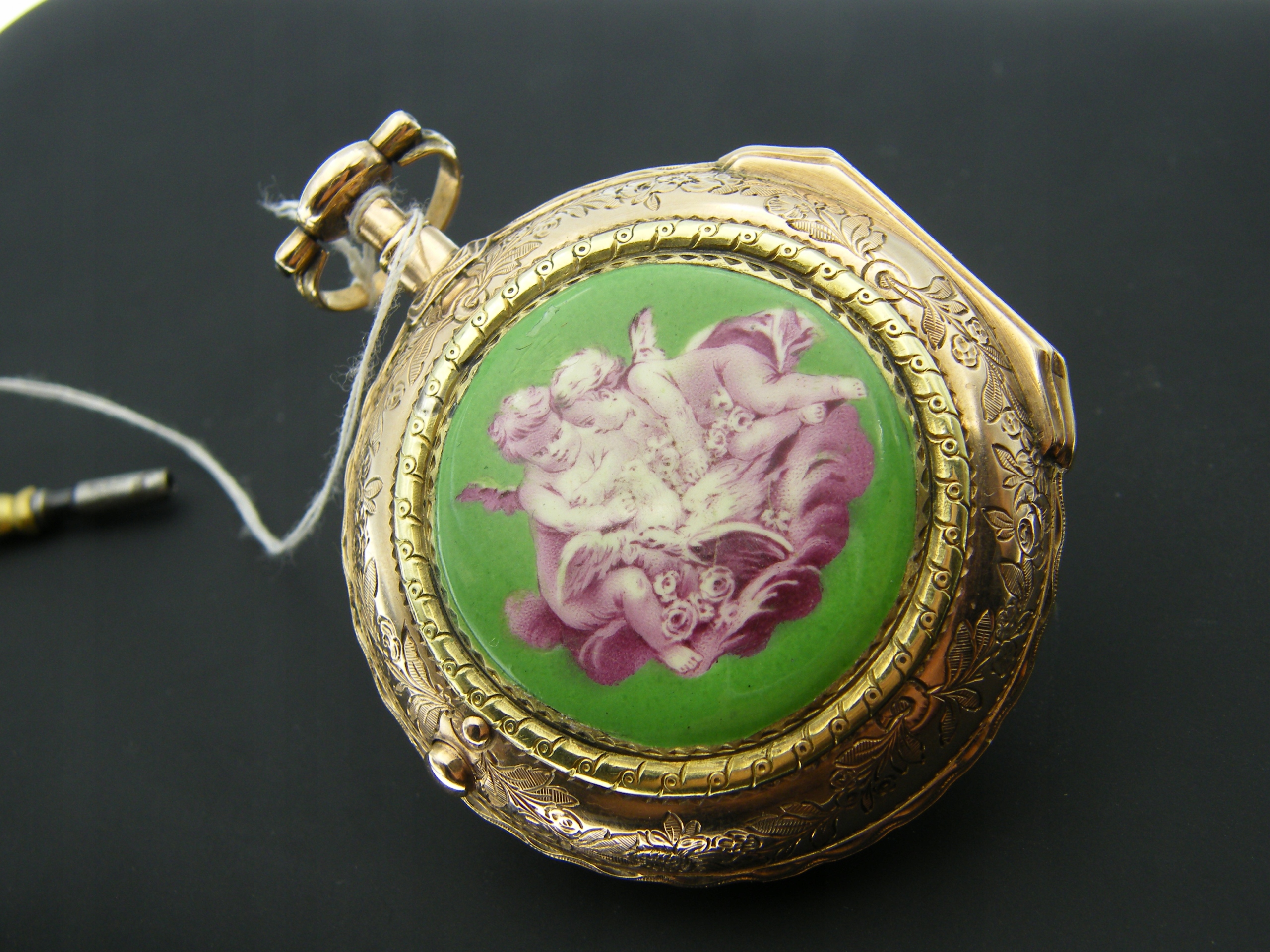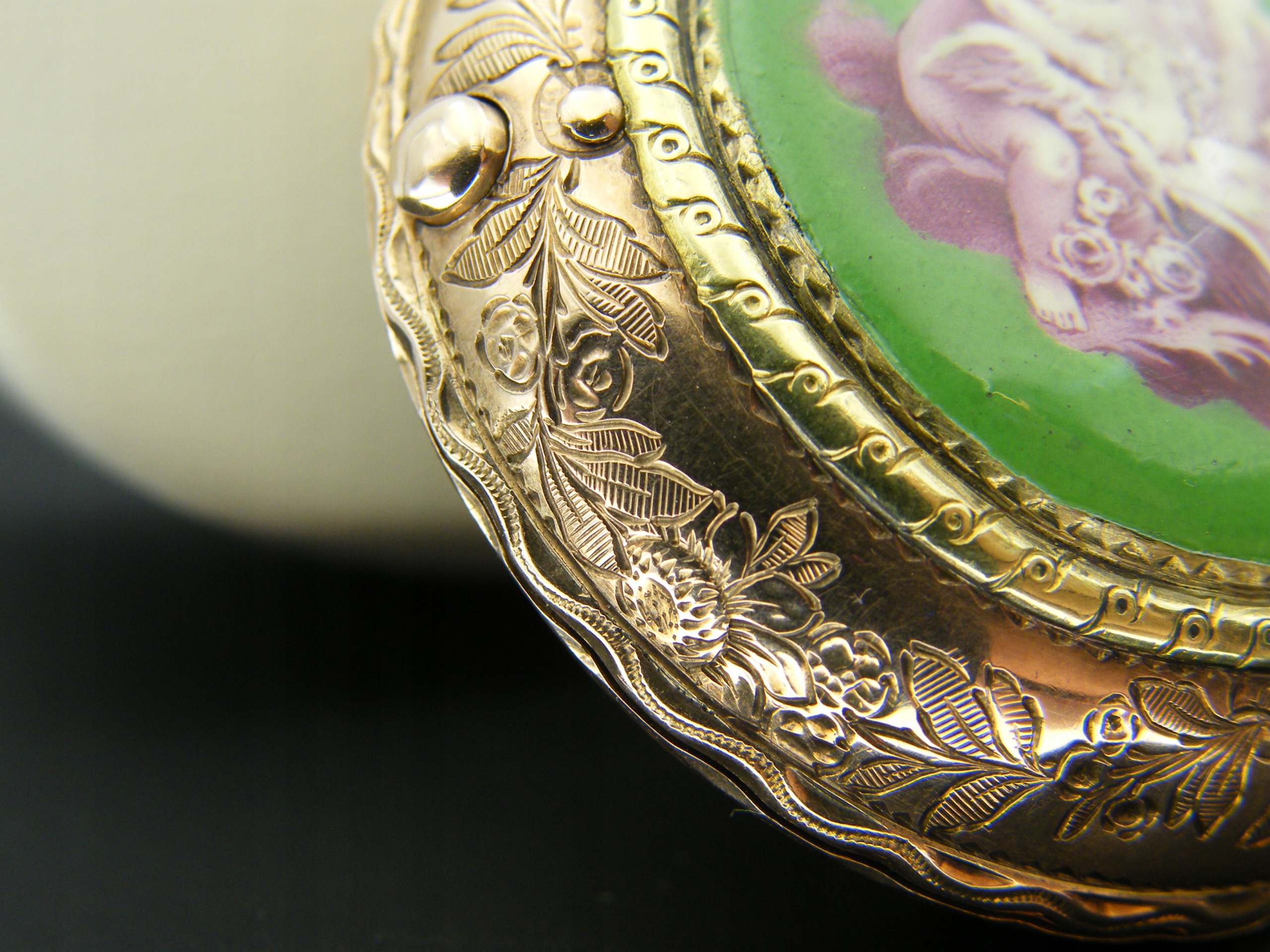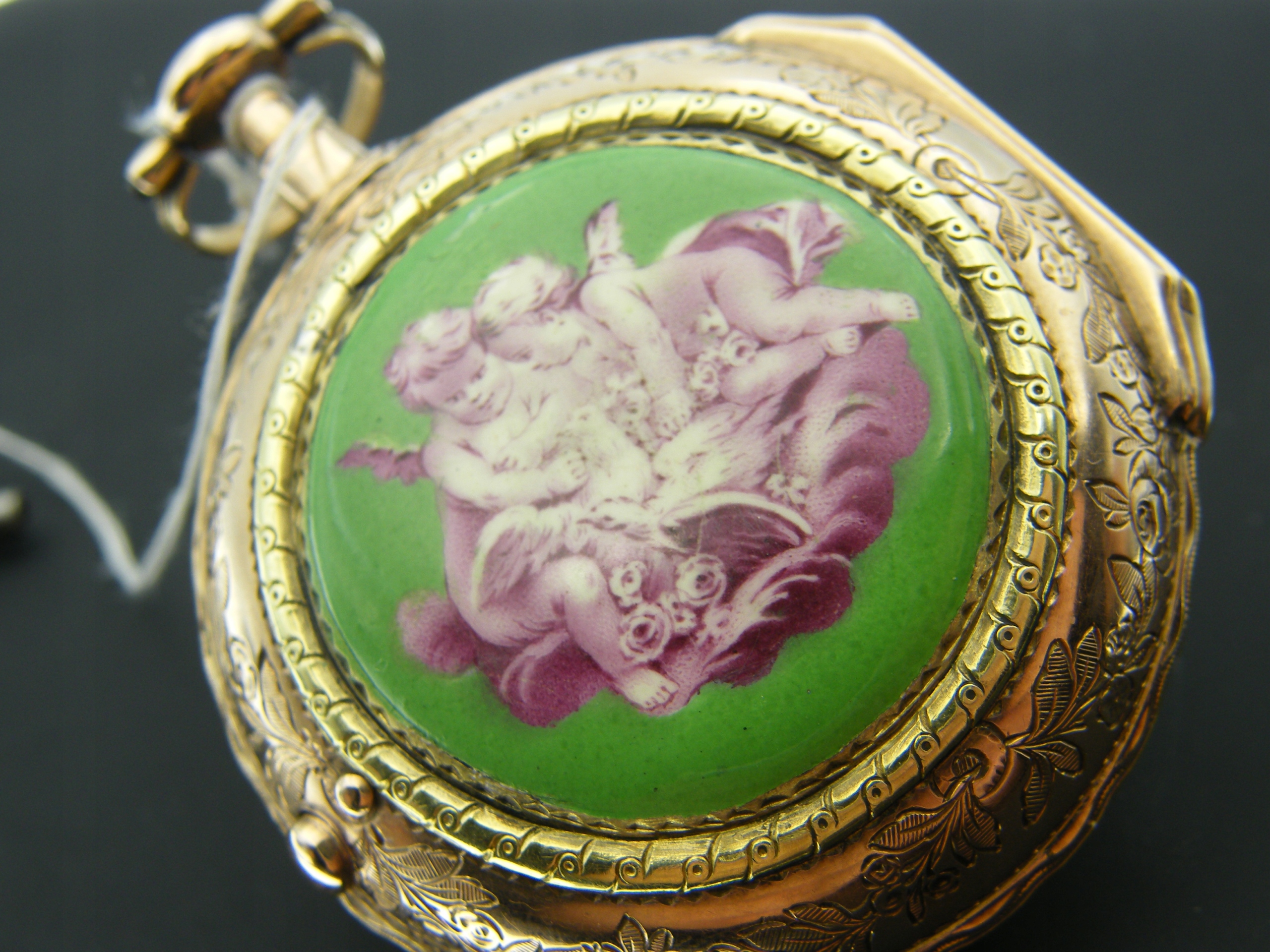 В золотой энхларе 18K Encalar Pr.0750 с фарфоровым экраном и ангелами в эмале на задней крышке