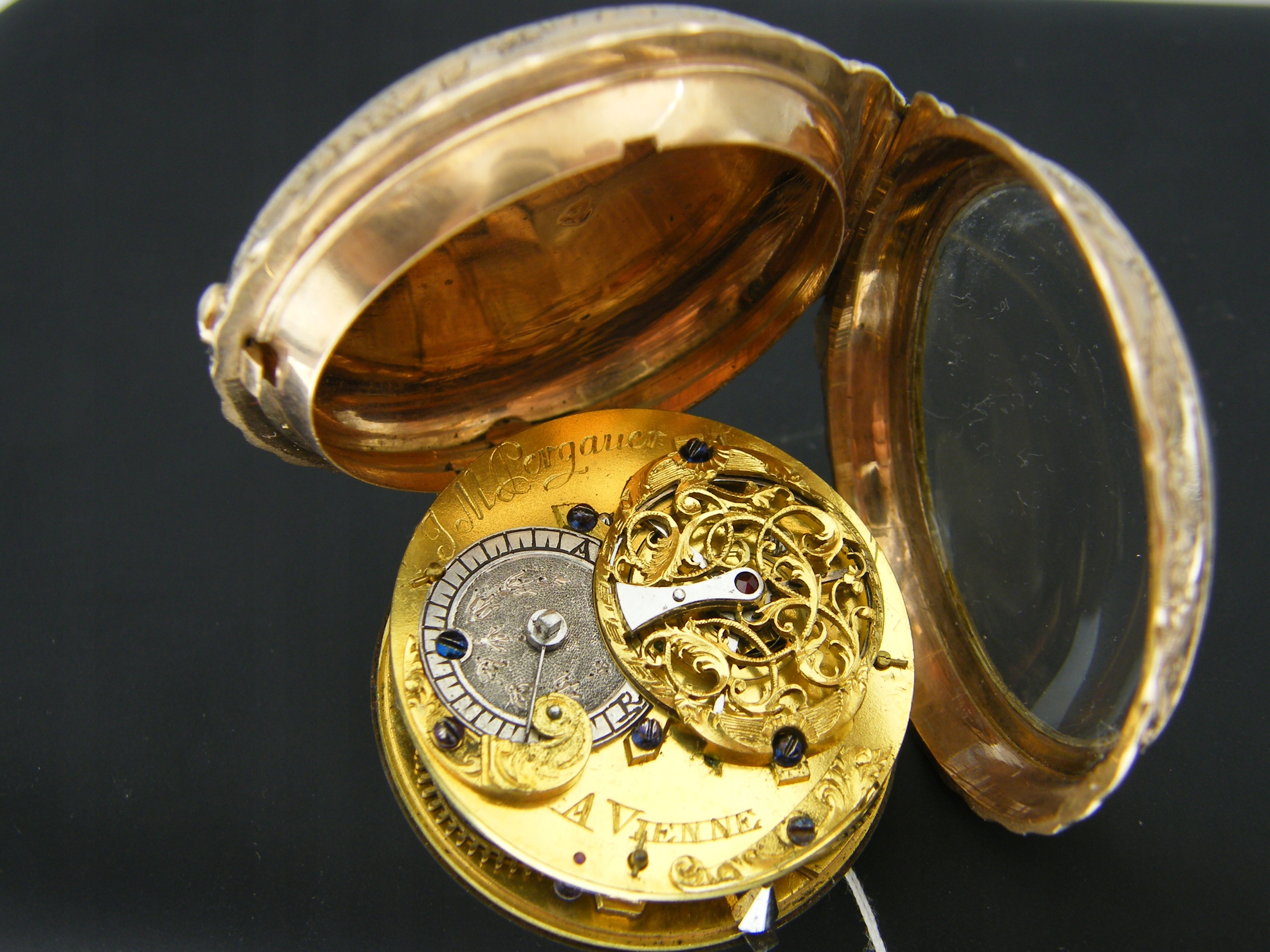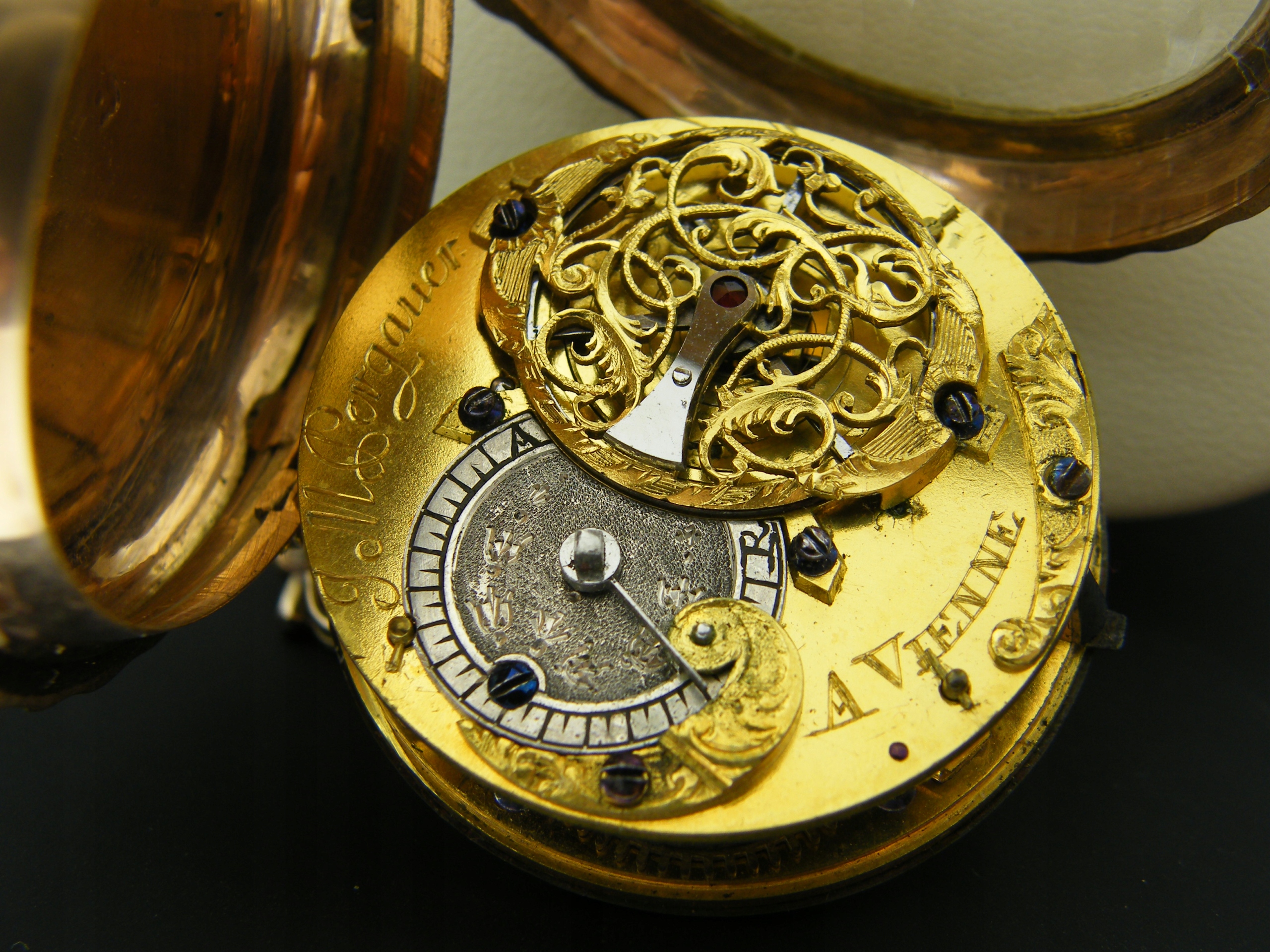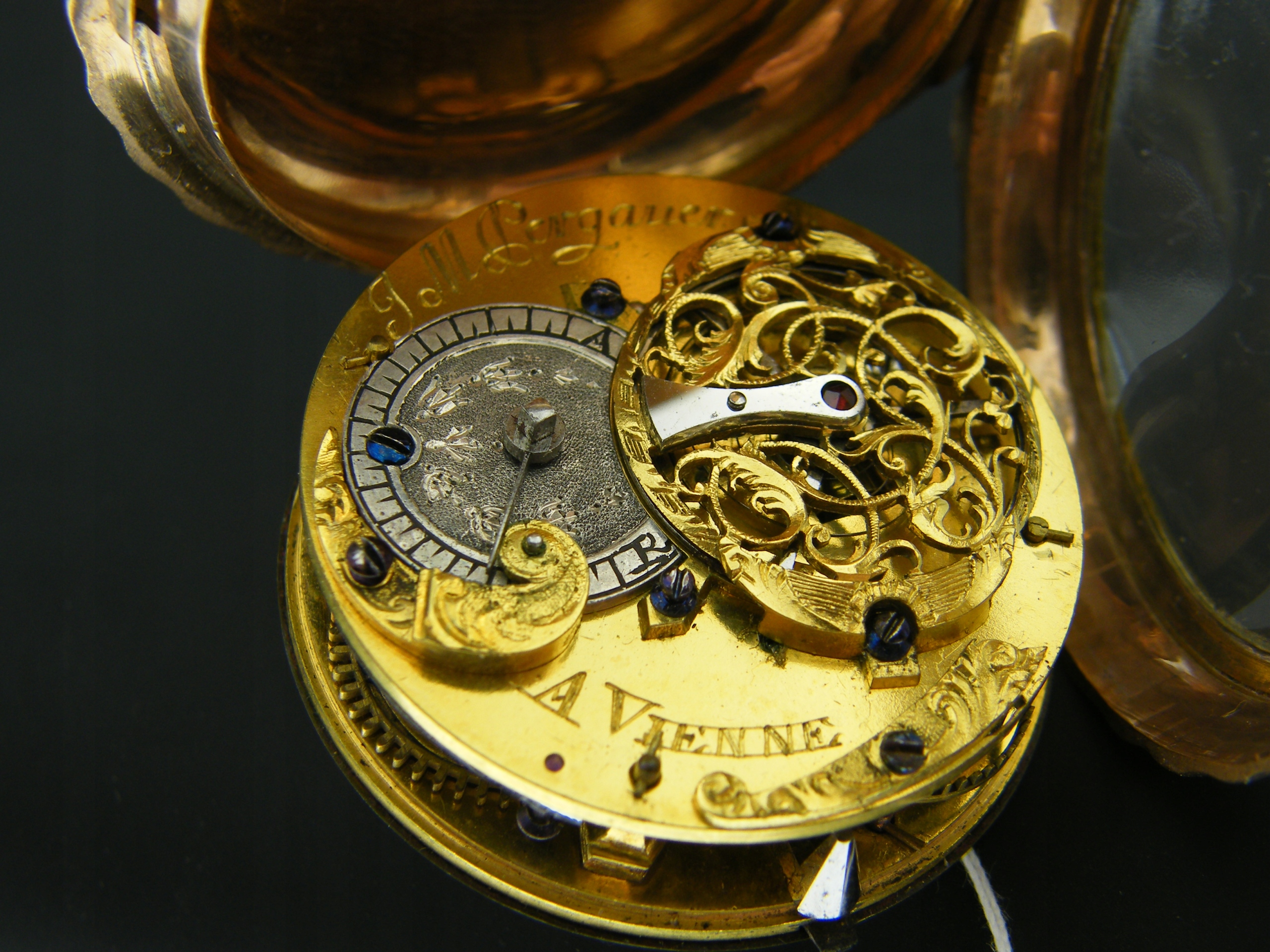 J .M. Pergauer A Vienne Museum Spindle Clock в 18 тыс. Золото + эмаль