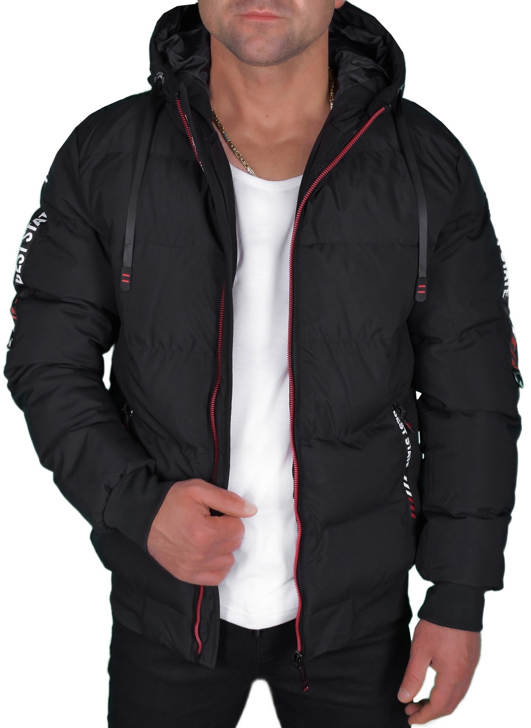 J STYLE kurtka męska pikowana z kapturem Red Fireball
