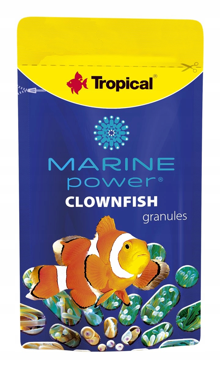 Морская мощная клоуна Клоуна - это пища в виде утонующих гранул, полностью покрывающих потребности в питании шнурок и других маленьких видов рифовой рыбы. Его с нетерпением едят рыбу и вишни. Он содержит антаркктику и каланус, которые являются источником белка, богатого экзогенными аминокислотами и ненасыщенными жирными кислотами, включая омега-3, влияющие на рост и общее состояние рыбы. Регулярно используется укрепляет цвета рыбы благодаря высоким содержанию каротиноидов, в том числе астаксантин. Подходит для ежедневного кормления меньшей рыбы, в основном штуковины (Amphiprion ocellaris, амфиприонная перкула, амфиприонные себа, амфиприон акалисос, амфиприонский Перидерхейон, Амфиприон Кларки, Премнас Биакалеату, Гиакулеат), Гибикейс, Гри -Гисипа, Гибисис, Гибисис ea, dascyllus melanurus, Dascyllus trimaculatus) и Ukwiłww (entacmaea Quadricolor, Heteractis crispa, Stichodactyla обои, Cribrinopsis crassa и т. Д.).
