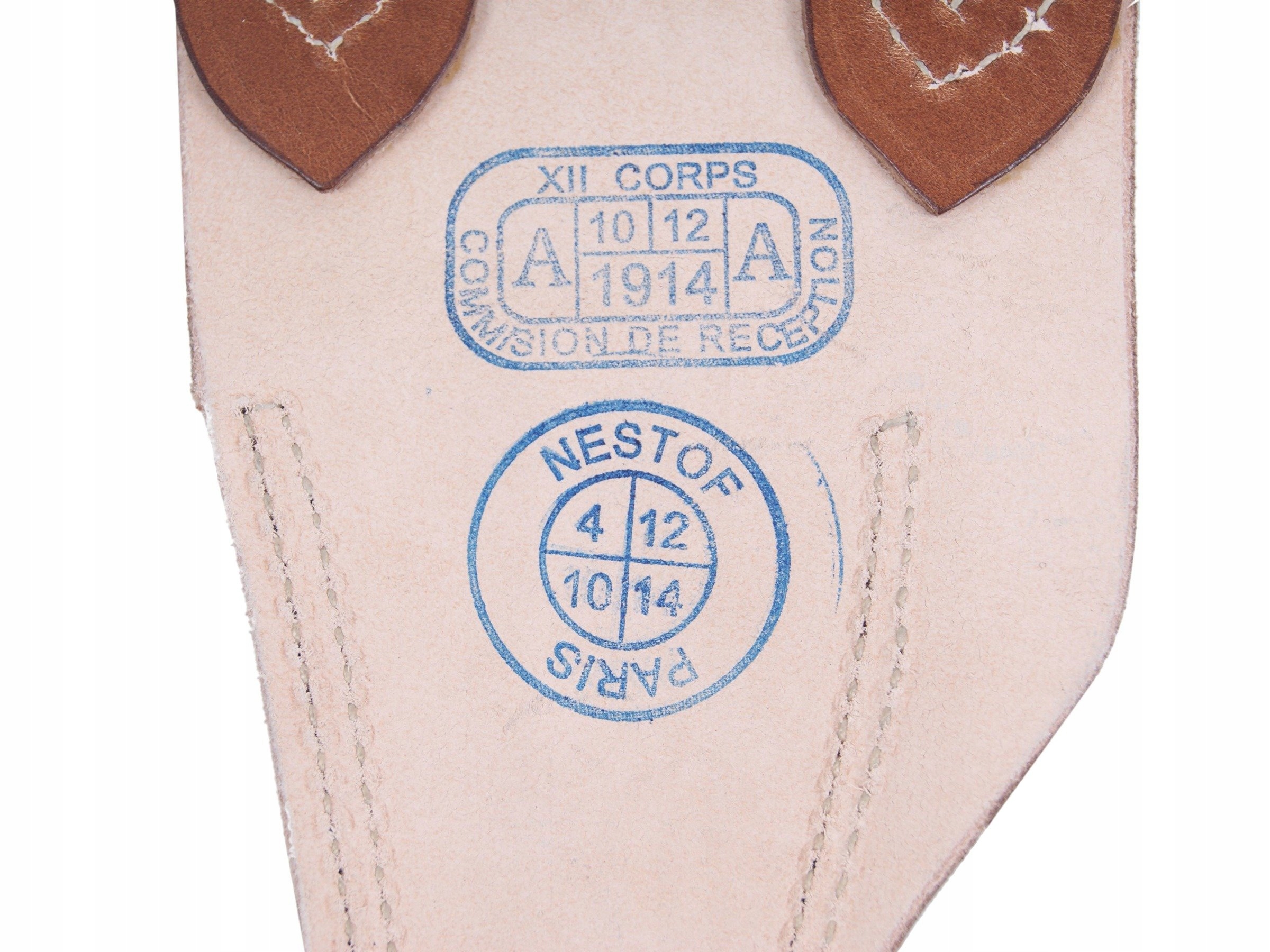 Идеальная копия французской лягушки Mle. 1874 г. Лягушка изготовлена из натуральной кожи растительного дубления. Шитье натуральной небеленой нитью, латунная фурнитура. Nestof® собственного производства - однозначно рекомендуем!