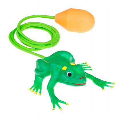При нажатии на насос лягушка начинает прыгать.