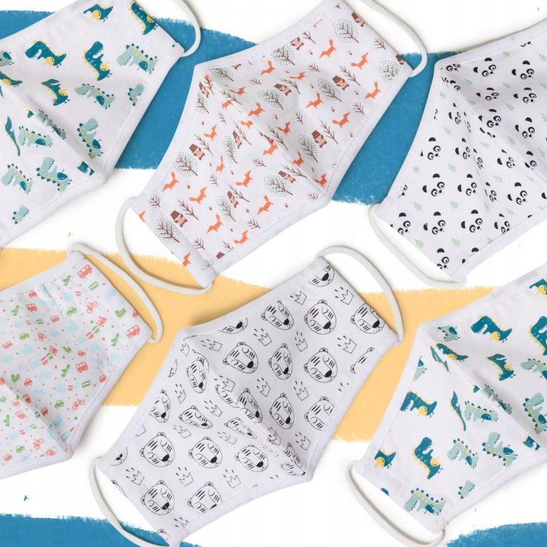 Этот специальный набор масок с очаровательным и креативным дизайном, подходящим для детей, побудит ваших милых детей носить их, оставаясь защищенными. Эта многофункциональная текстильная маска изготовлена из одного слоя непористой и дышащей ткани из 100% хлопка.