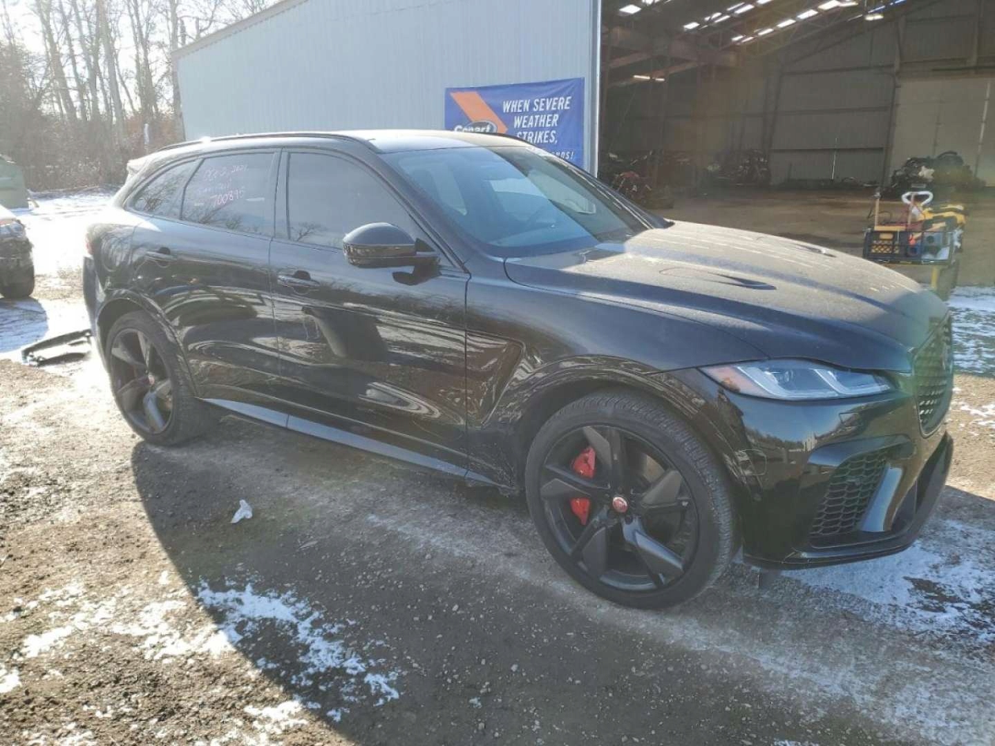 jaguar f-pace, автомобиль начинается и проезжает от страховой компании.