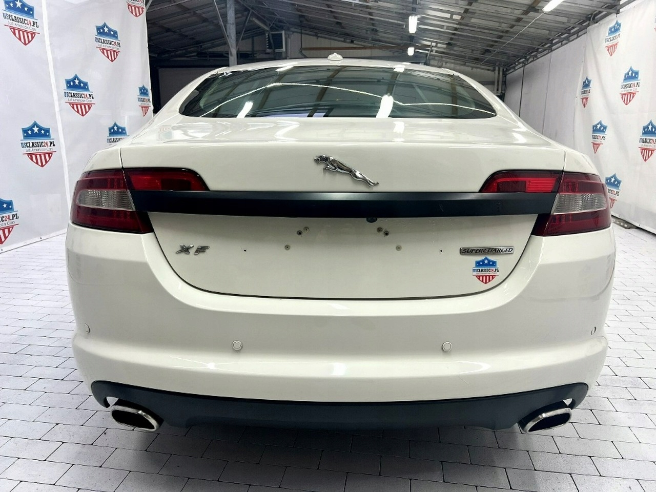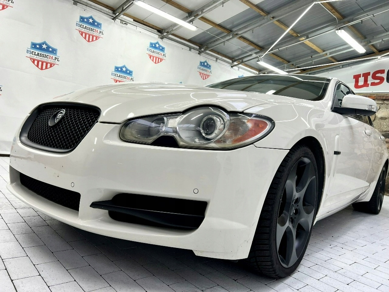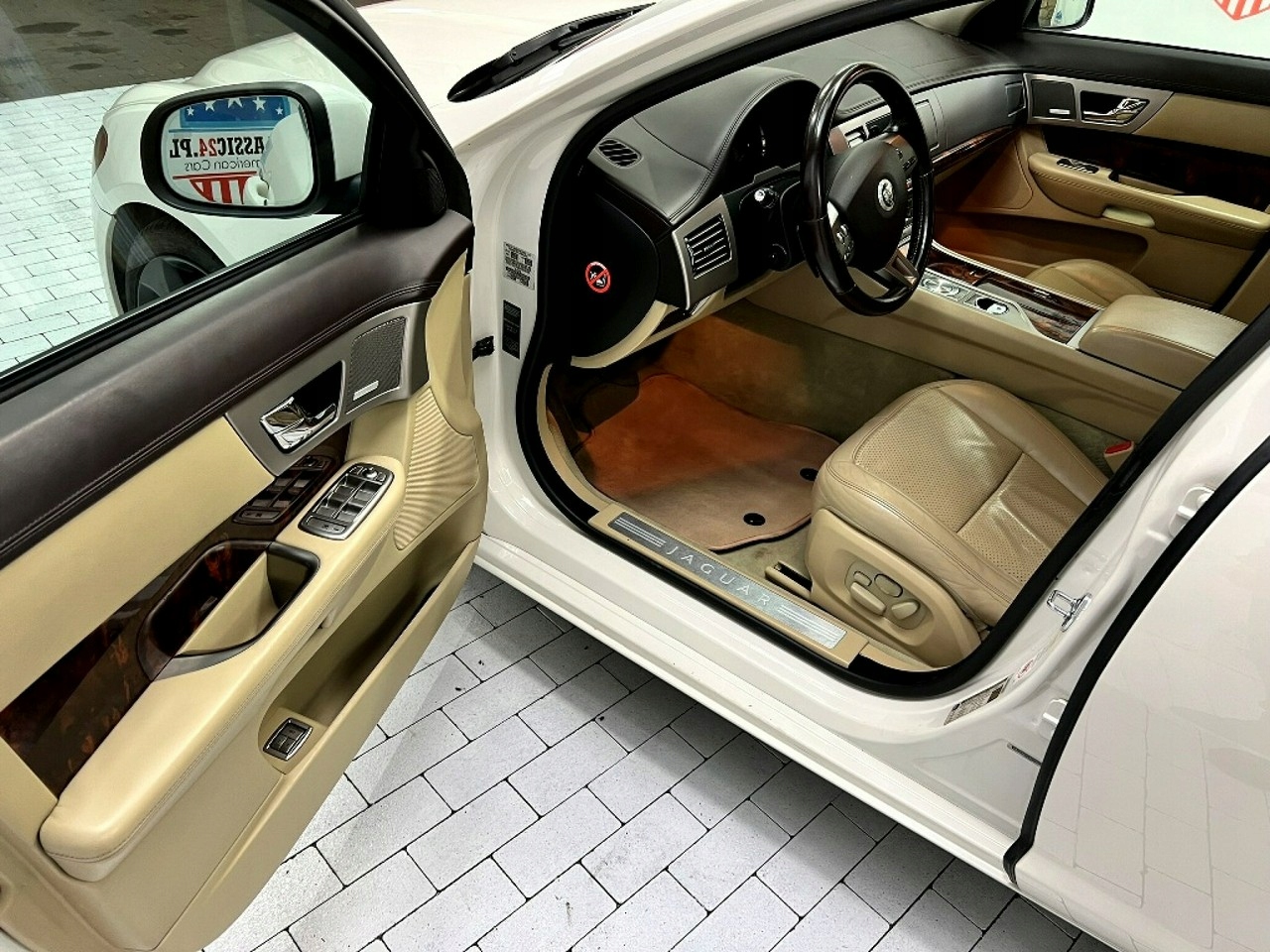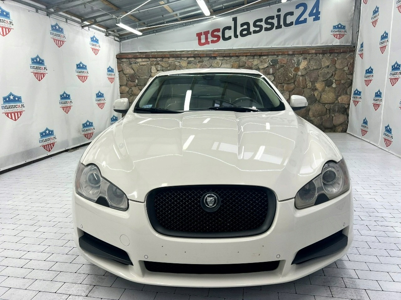 Jaguar XF от 2008 года - это элегантный седан с впечатляющим внешним видом, окрашенный белый, который подчеркивает его спортивный характер.