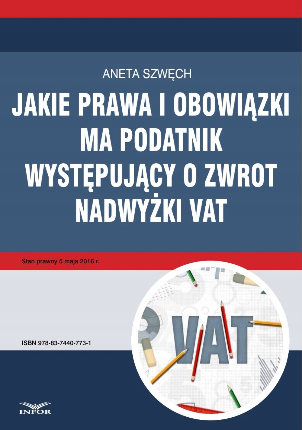 Просматривая «Jakie prawa i obowiązki ma podatnik występujący o zwrot nadwyżki VAT - Anet», вы можете быть уверены, что данный товар из каталога «Закон, администрация» будет доставлен из Польши и проверен на целостность. В цене товара, указанной на сайте, учтена доставка из Польши. Внимание!!! Товары для Евросоюза, согласно законодательству стран Евросоюза, могут отличаться упаковкой или наполнением.