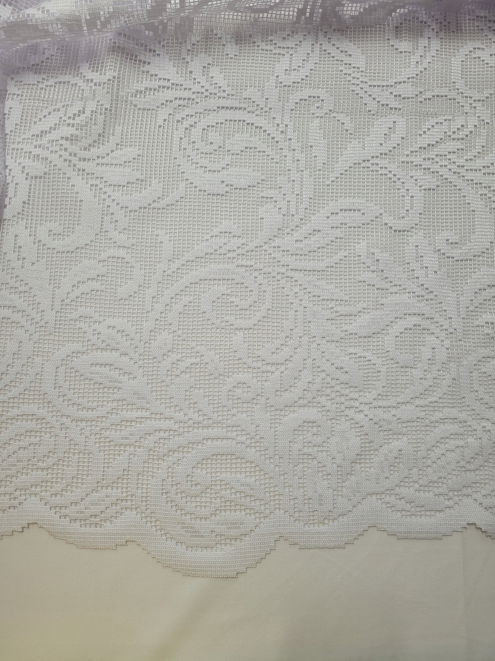 Жаккардовая штора очень плотного переплетения, белого цвета. Штора массивная и довольно тяжелая.
