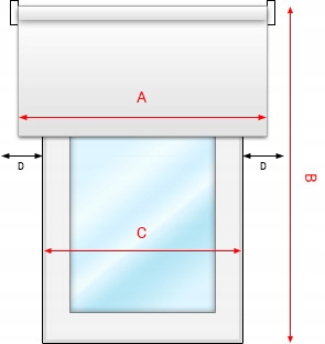 Размеры указаны только для ткани, вся рулонная штора с механизмами примерно на 6 см шире.
