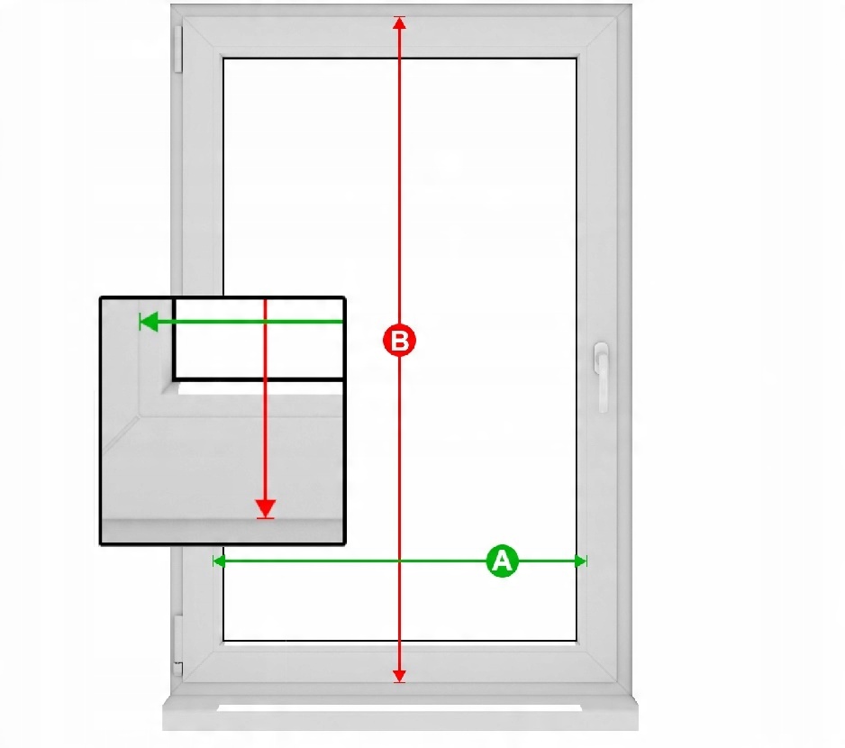Ширина складки A — ширина стекла без уплотнителя на стекле.