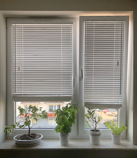 Обратите внимание, что жалюзи могут блокировать открытие окна. После раскатки уходит 1,3 см на каждые 10 см высоты + 7 см (верхний брус 7 см, нижний брус 2 см). Поэтому безопаснее всего устанавливать жалюзи близко к потолку.