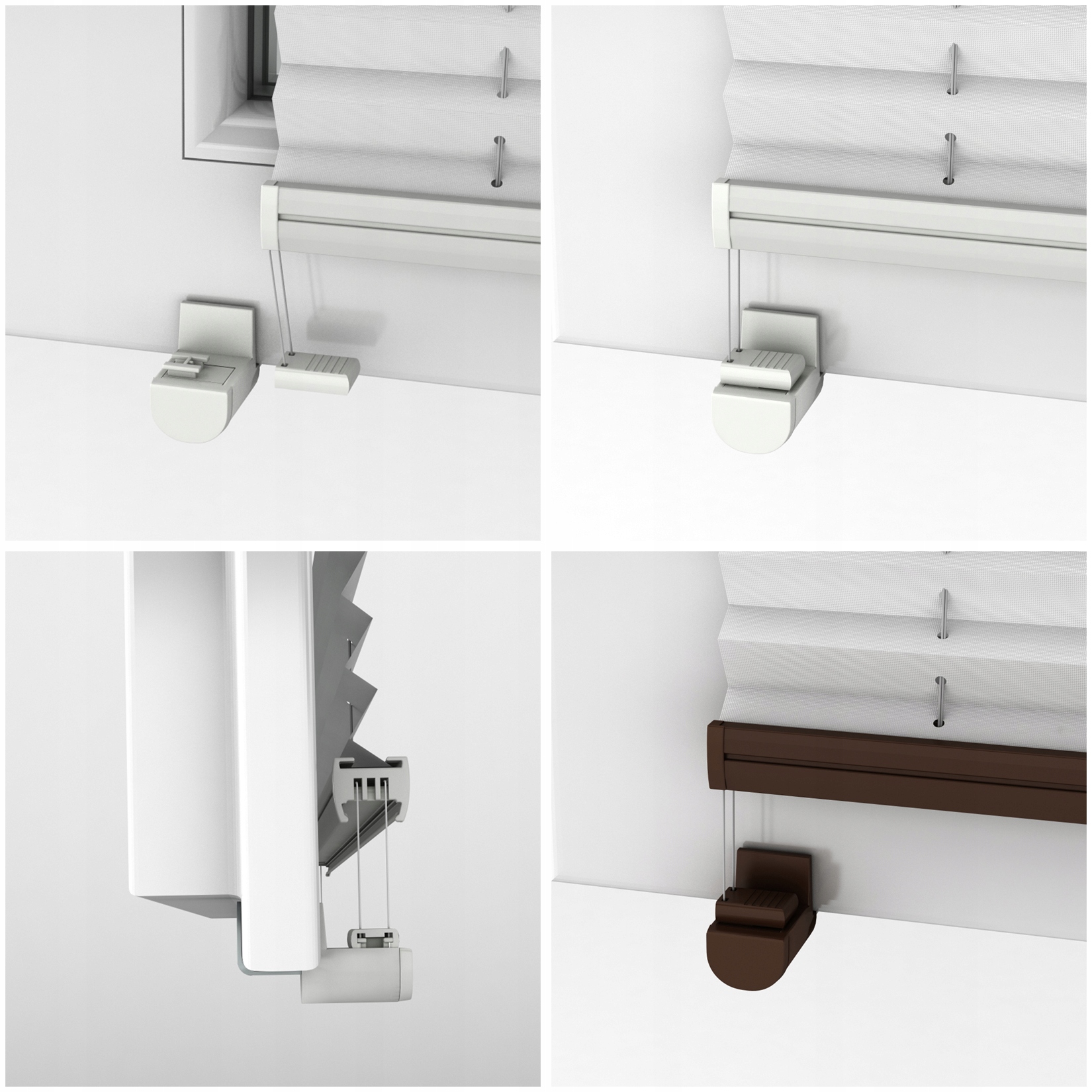 При заказе варианта неинвазивной установки во время настройки вы получаете твердые, высококачественные пластиковые и металлические ручки, которые можно легко и удобно прикрепить. складки на оконной раме. Каждая рулонная штора имеет набор из 4 ручек, доступных в белом и коричневом цветах.