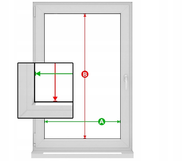 Ширина складки A — ширина стекла без уплотнителя на стекле.