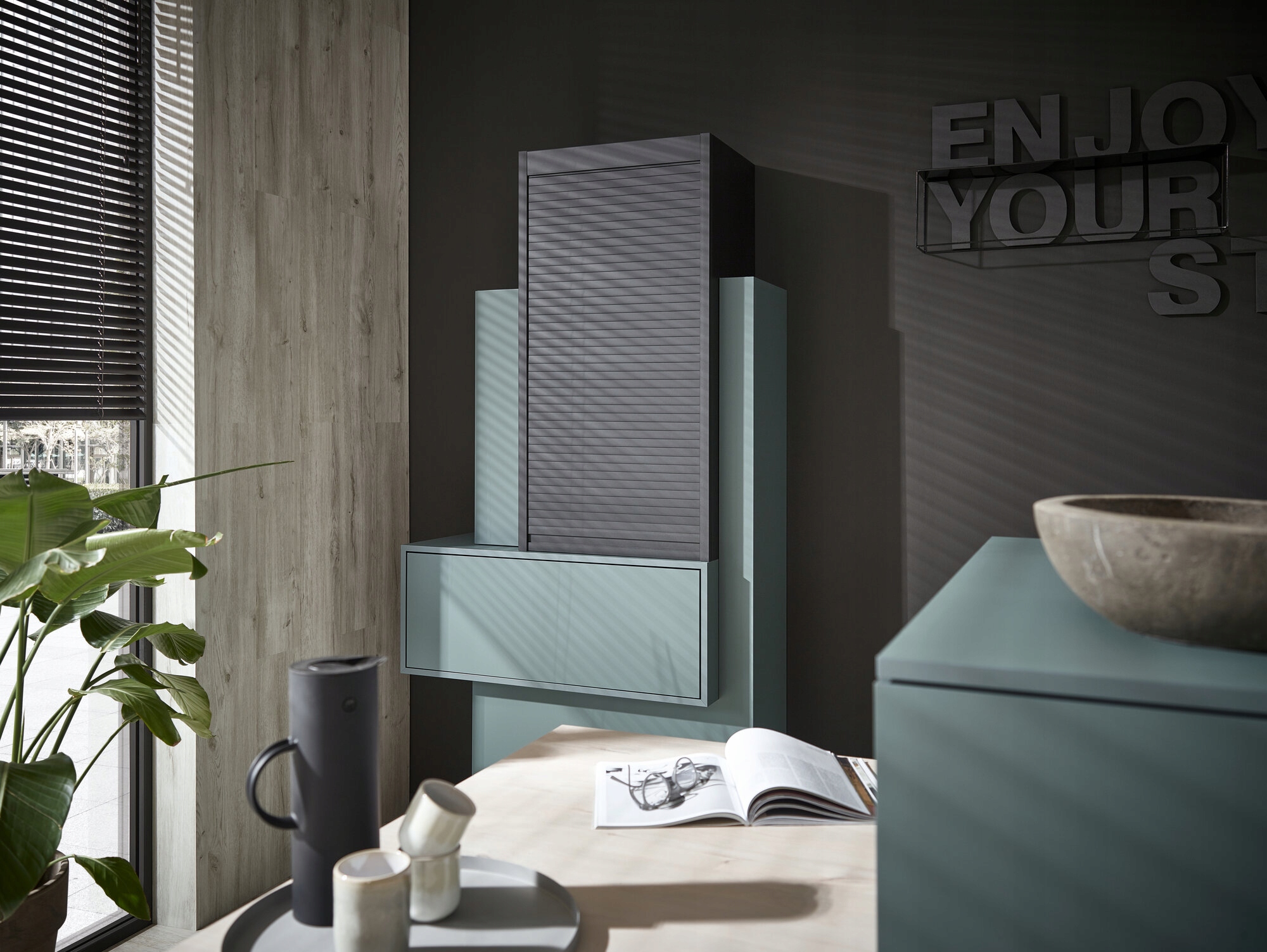 Эксклюзивная мебельная жалюзи REHAU RAUVISIO noir Noble Matt, цвет Gaslit Alley графит/антрацит