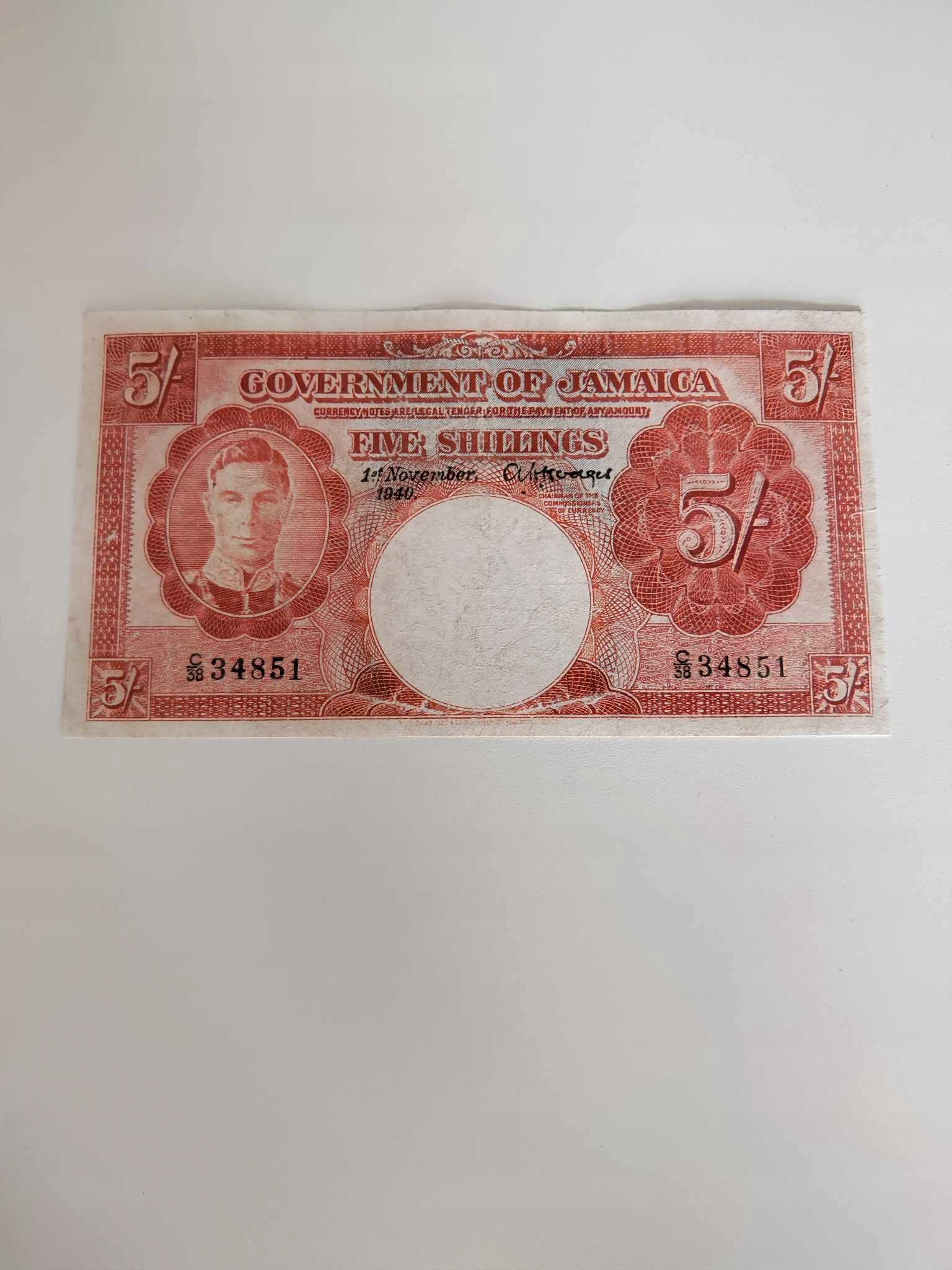 Jamajka - 5 Szylingów - 1940 - rzadki