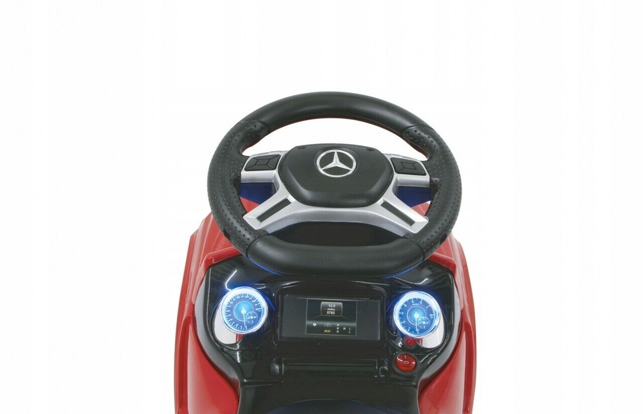 Каракат Mercedes создан с вниманием к мельчайшим деталям и используемым материалам. Он имеет удобное сиденье из синтетической кожи с отделением под ним, обеспечивающим дополнительное место для хранения игрушек.