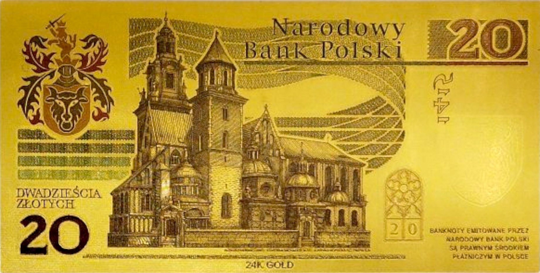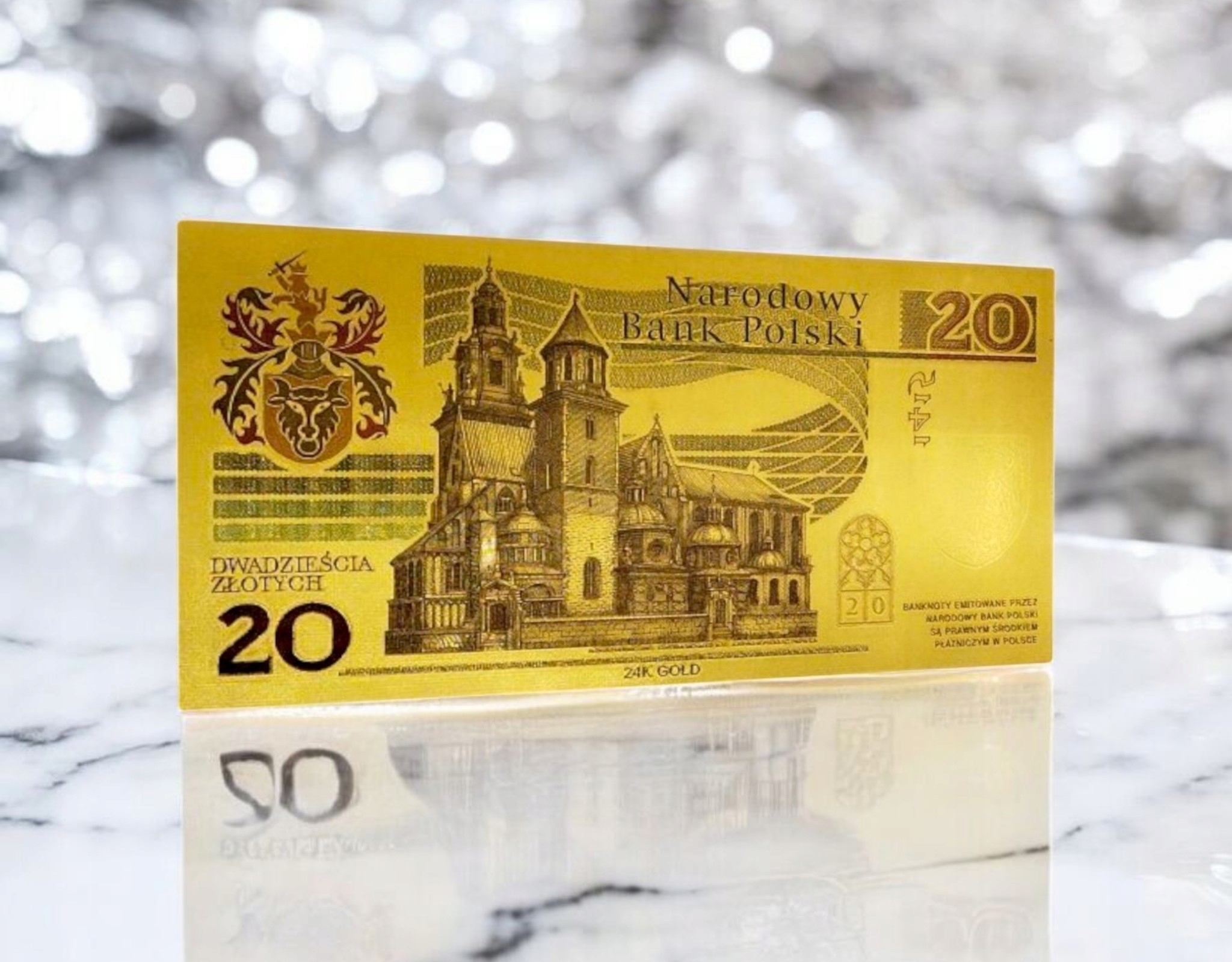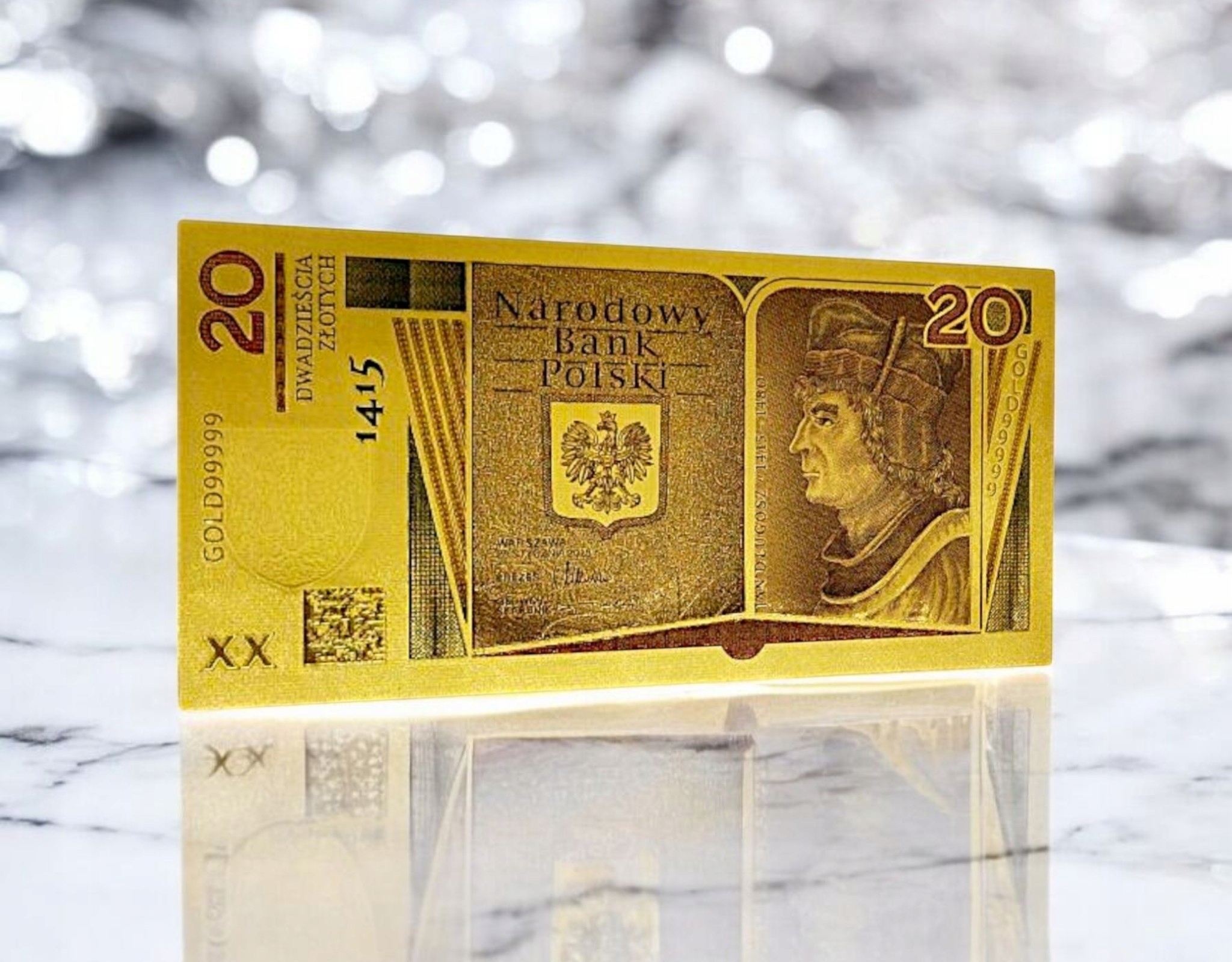КОЛЛЕКЦИОНЕРСКАЯ ПОЗОЛОЧЕННАЯ БАНКНОТА ИЗ ПВХ ЯНА ДЛУГОША