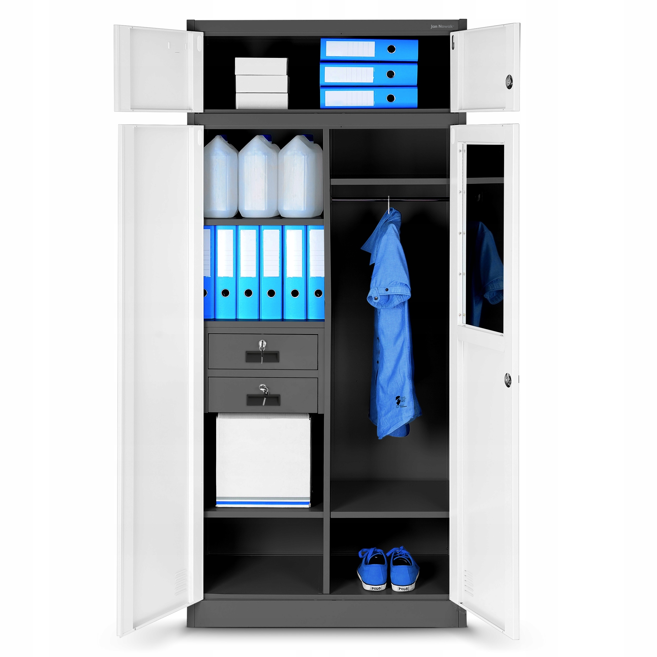 Социальный шкаф антрацит-белый JAN NOWAK модель БОРИС - шкаф многокамерный для одежды, документов, офиса, мастерской, 90 см