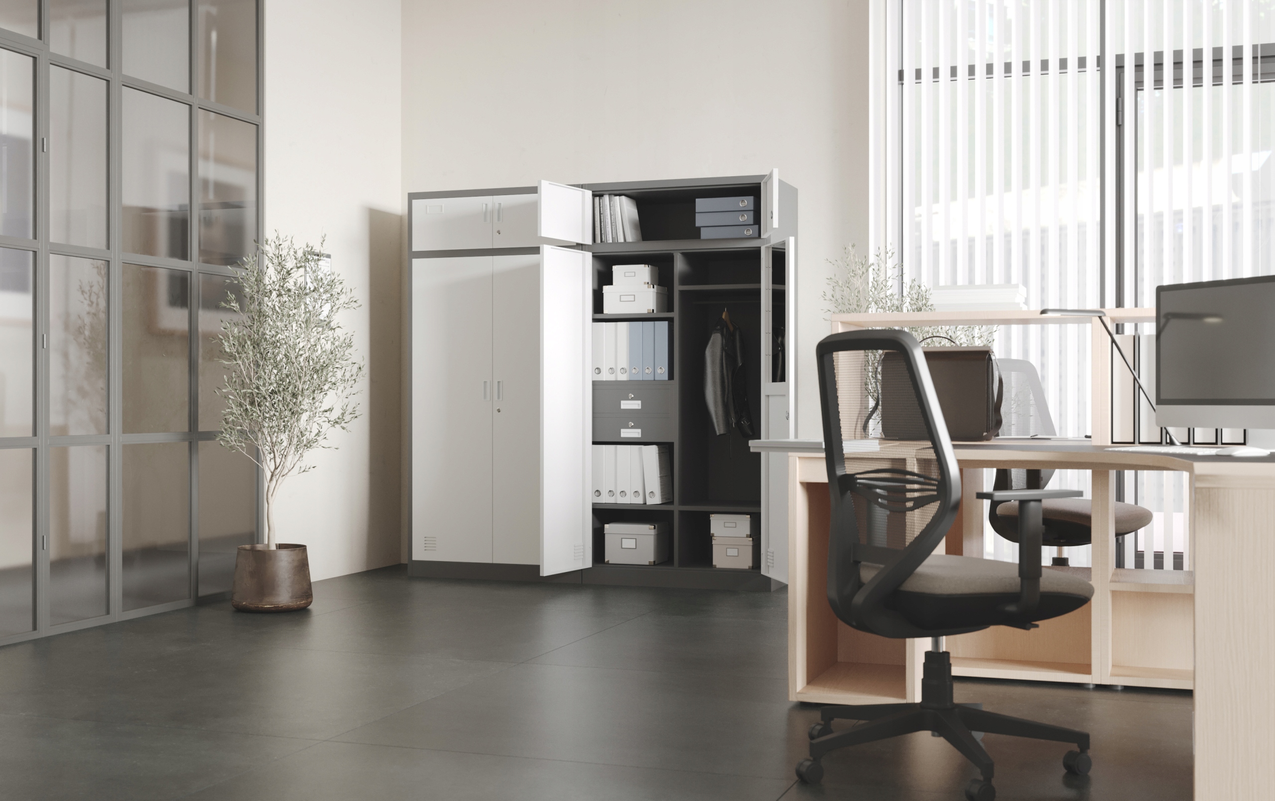 Современный социальный гардероб БОРИС – это исключительно функциональный предмет мебели, который полностью изменит работу вашего офиса. Вместительная и профессиональная, эта модель является самой многофункциональной из всех металлических шкафов, имеющихся в нашем предложении. Познакомьтесь с металлическим шкафом BORYS антрацитового и белого цвета, обязательным элементом каждого эффективно функционирующего офиса, мастерской или кабинета.