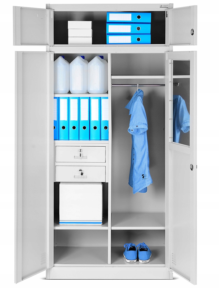 Офисный шкаф BORYS — исключительно универсальная модель. Он позволяет хранить необходимые вещи или документы в одном месте, а трехточечный замок обеспечивает им необходимую безопасность.