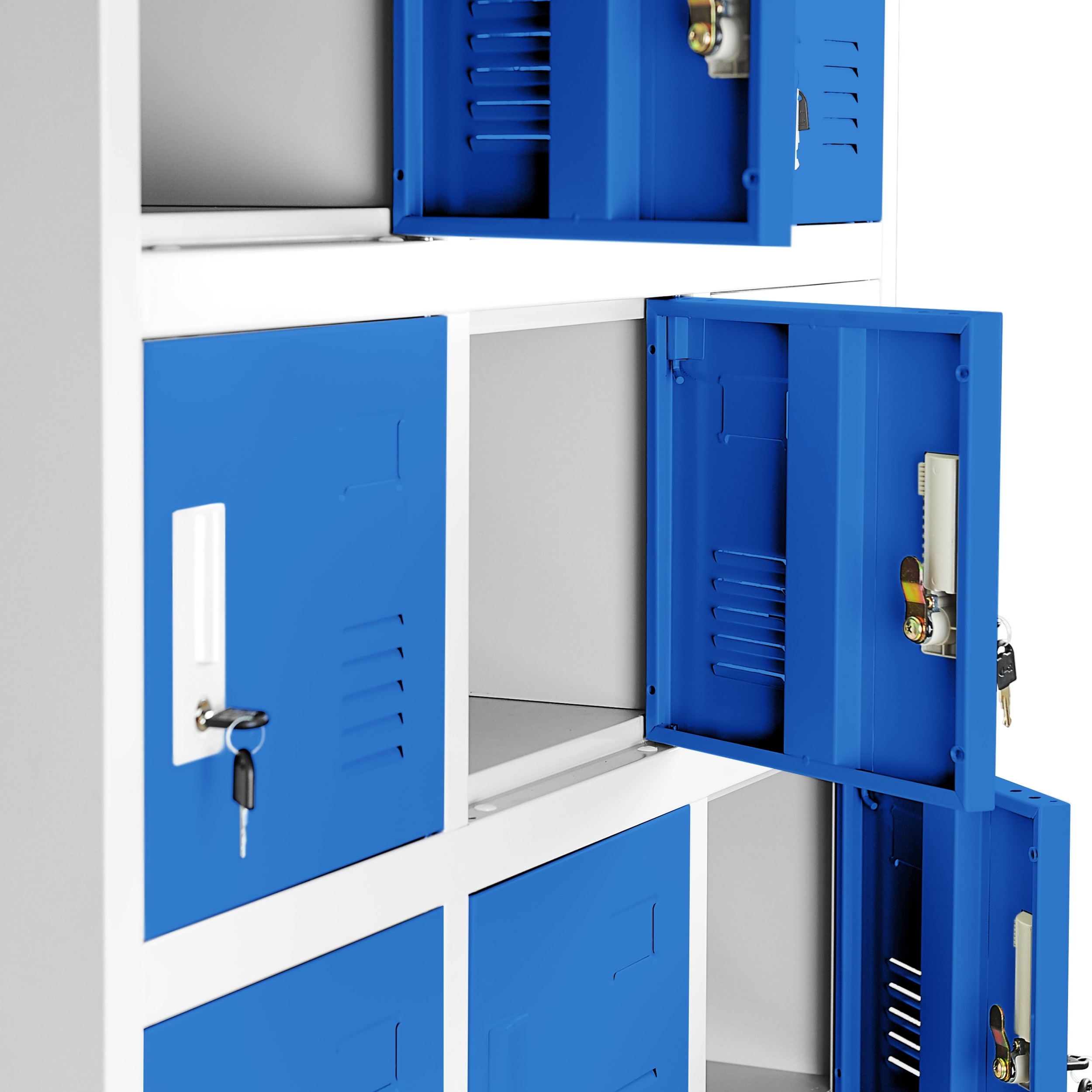 Серый и синий социальный шкаф JAN NOWAK модель KAROL - шкаф для хранения одежды, документов и техники безопасности, 18 шкафов, для мастерских, предприятий