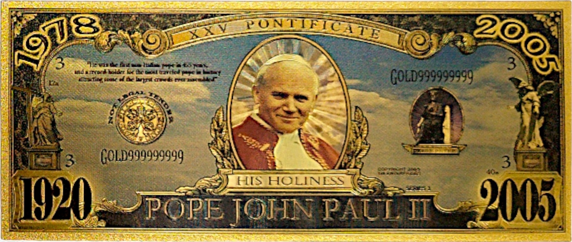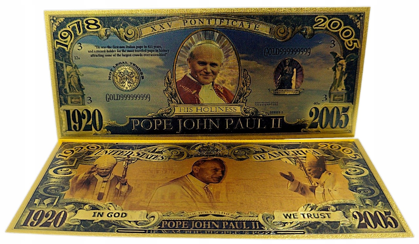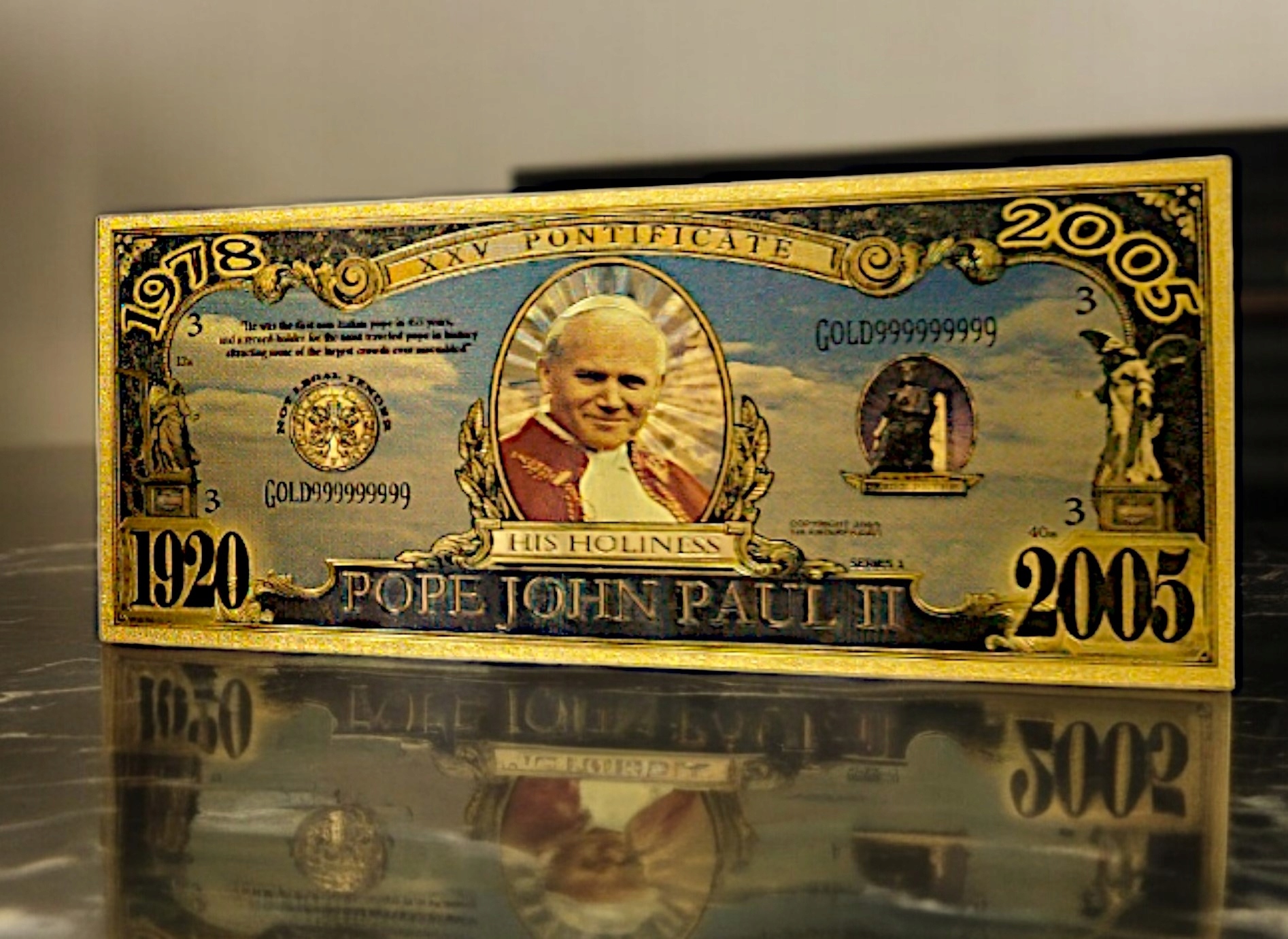 JAN PAWEŁ II Papież Okolicznościowy Pozłacany Banknot RARYTAS DO KOLEKCJI