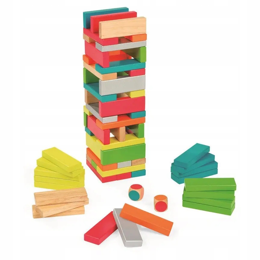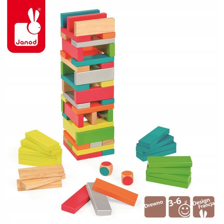 Аркадная игра Equilibloc Color Janod Tower of Blocks Аркадная игра Equilibloc предполагает вытягивание блоков из башни одной рукой и строительство новых этажей. Победителем становится тот, кто последним добавит блок и башня не упадет. Проигрывает тот, кто снесет башню. Дополнительной опцией является включение в игру цветов блоков: бросая кубик, игрок случайным образом выбирает цвет блока, который ему следует вынести из башни. Игра Equilibloc развивает координацию рук, тренирует концентрацию и является источником бесконечного веселья для всей семьи! Игра, разработанная во Франции.