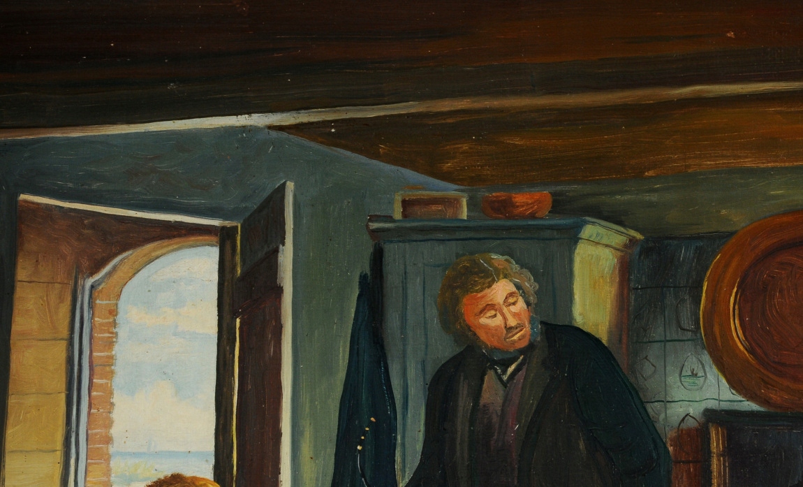Жанрская сцена "Женщины за столом" Уникальная старая нефтяная картина !!!