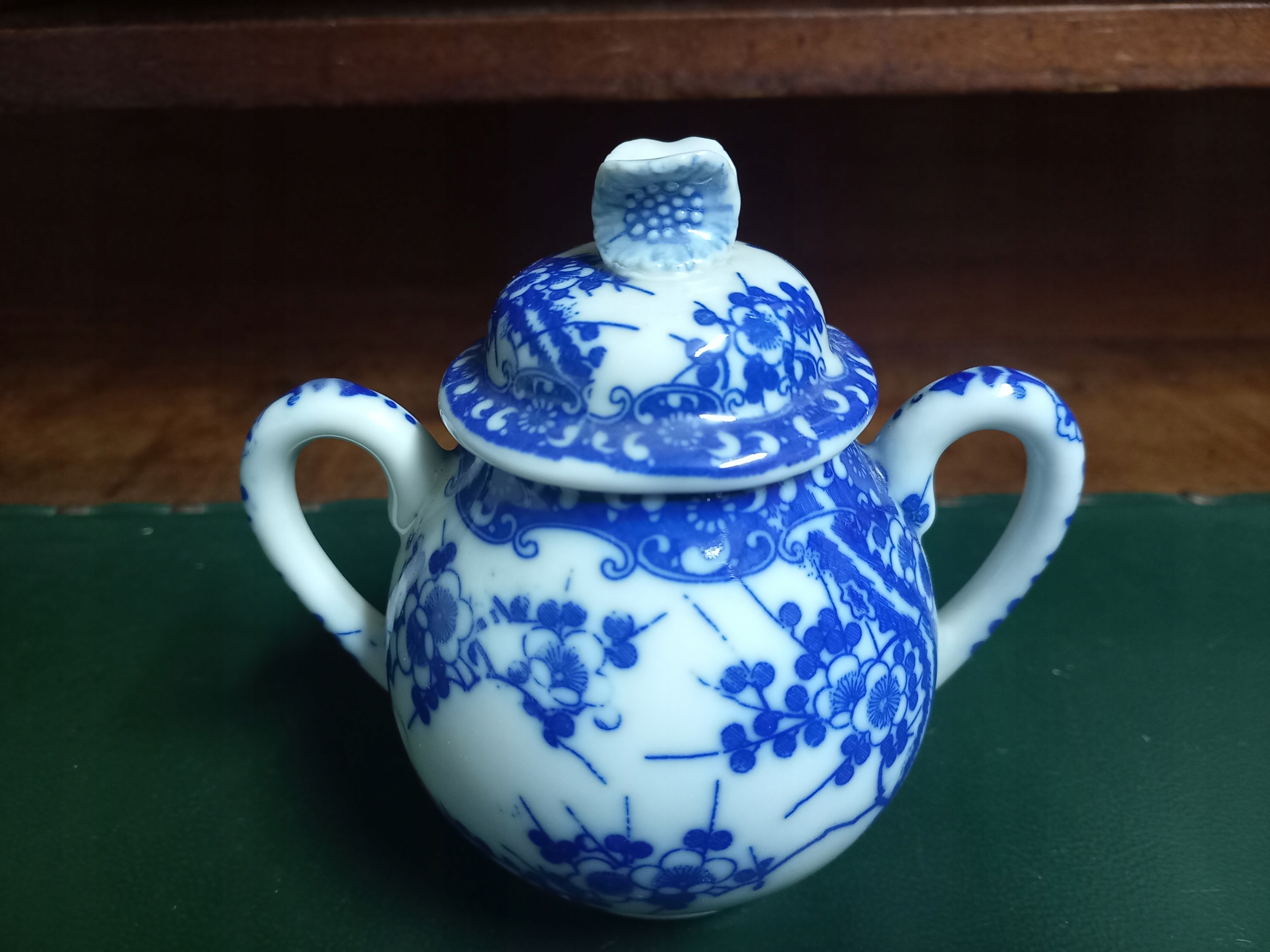 Предметом аукциона является настольный сервиз Japania Tokusei Nippon Blue с цветком вишни.