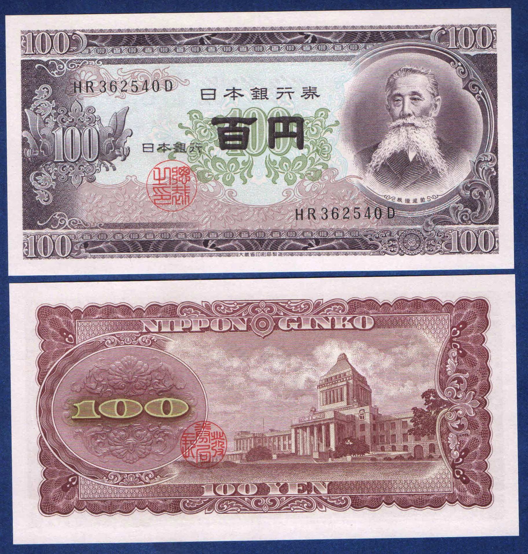 JAPONIA 100 JEN 1953 P-90 POSTACIE ARCHITEKTURA