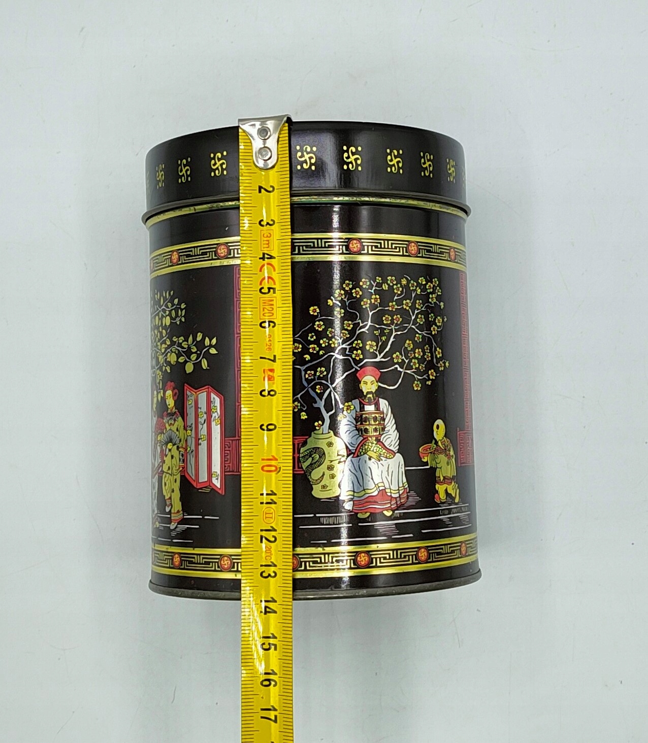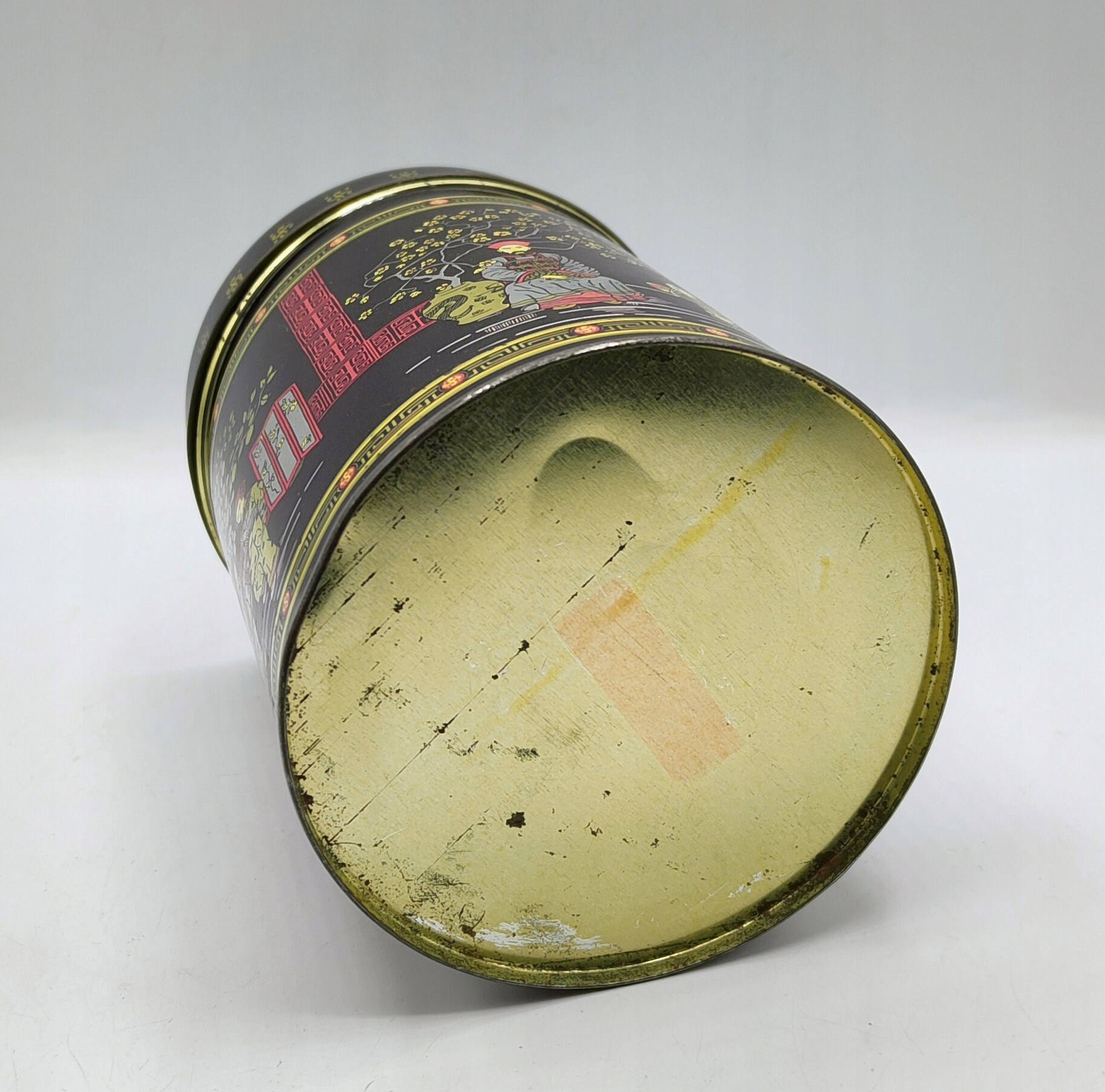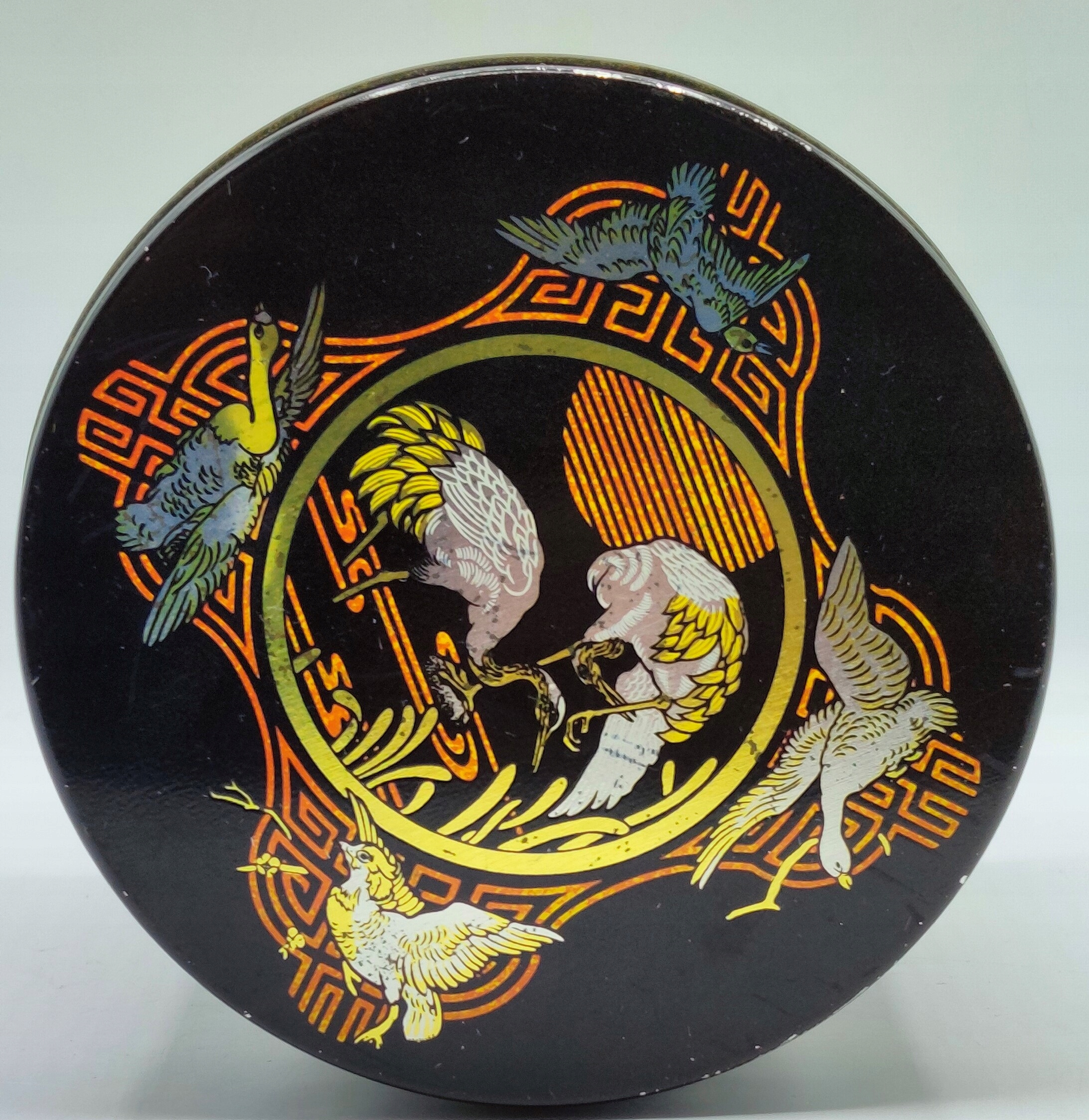 Japonia śliczna STARA puszka, kwiat wiśni, gejsze MISTRZ i czaple