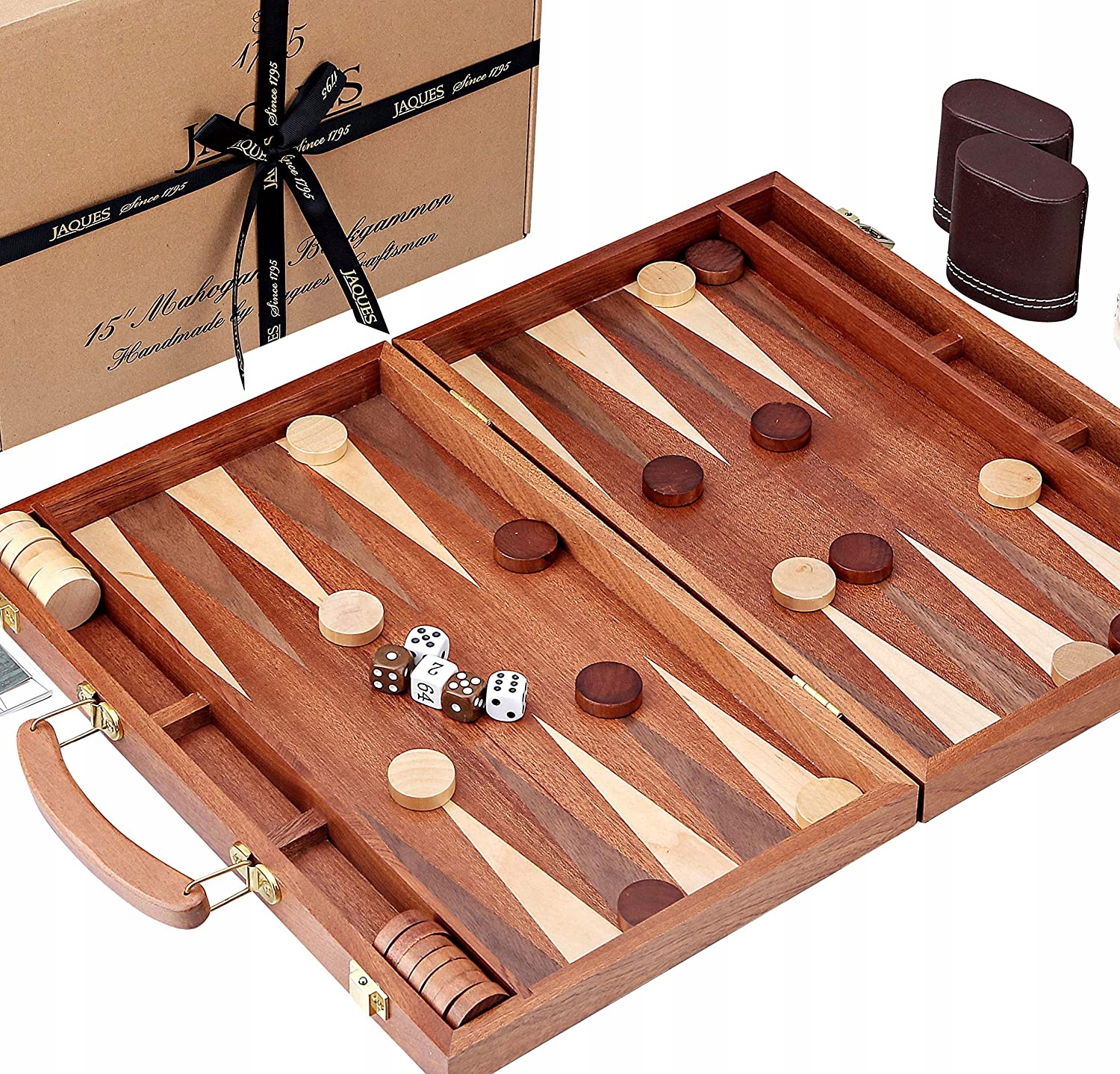 Набор нард из красного дерева 15 дюймов, прекрасно отделанный вручную на специальной фабрике Jaques Woodcraft Factory и отличается превосходной цветовой презентацией, пятью кубиками, двумя чашками из искусственной кожи и полным набором деревянных игровых фигур. Доска для игры в нарды из красного дерева сделана из тончайших инкрустаций, а каждая деревянная игровая точка идеально подогнана вручную. Деревянные игральные кости и высококачественные игральные кости. Лучший подарок. В комплект входят полные правила — «Как играть в нарды» от чемпиона мира по нардам Джона Дэвидсона. Английское качество — ручная работа Жака из Лондона — с 1795 года. Более 200 лет.