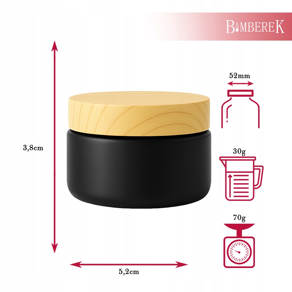 - ⚡ голос: 70 г Материал: Черное матовое стекло, крышка дерева, подражающая дереву <банка составляет 30 г , что соответствует различным количествам миллилитров в зависимости от того, что вы его заполняете. Толстый крем займет меньше места, чем легкое масло - поэтому банка адаптируется к вашим потребностям и рецептам.