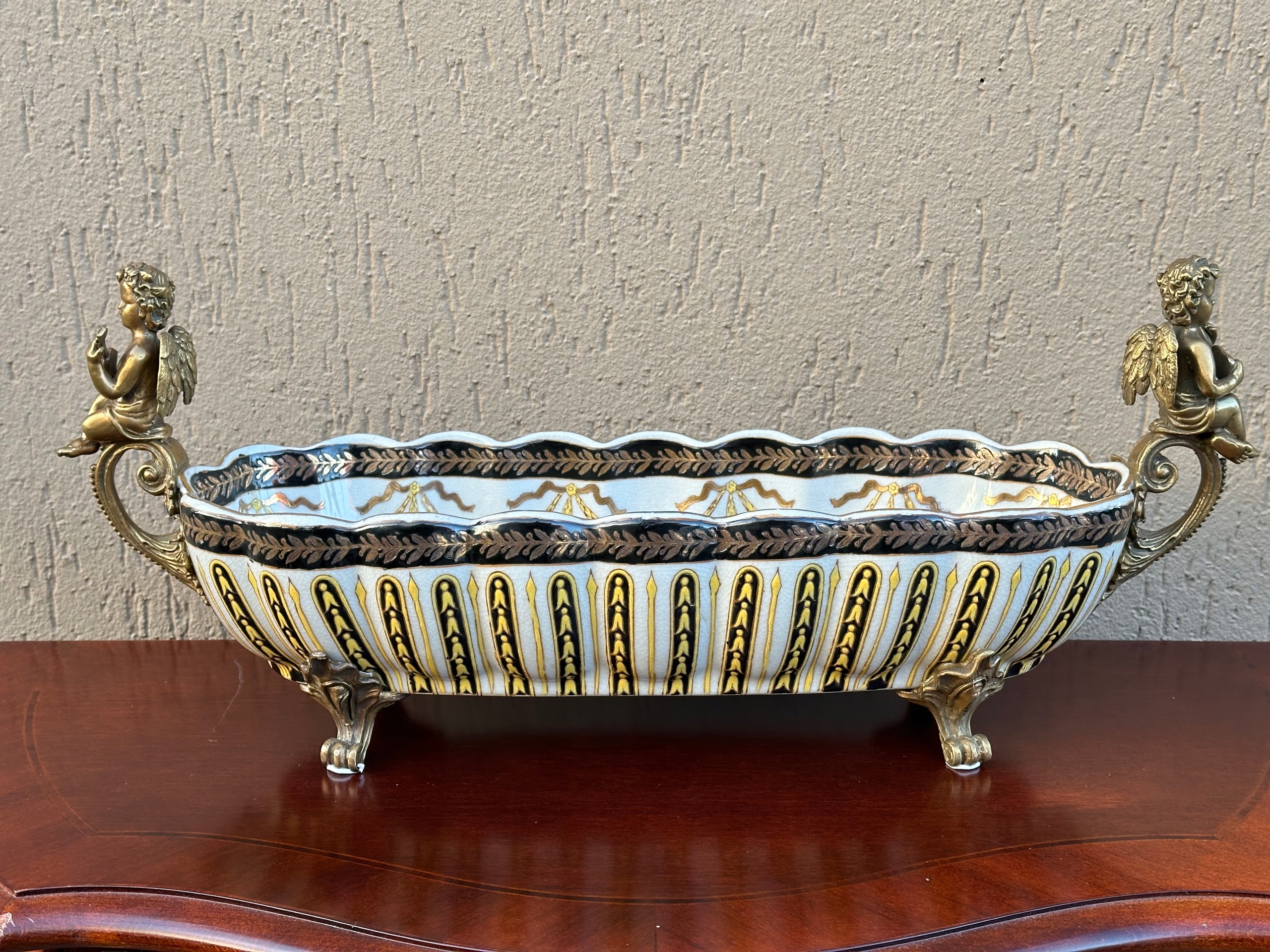 ЖАРДІНЬЄ ВЗІЗЕРОК З ЧАШКАМИ, ПОРЦЕЛЯНА, КОРИЧНЕВИЙ, ПІДПИСАНИЙ