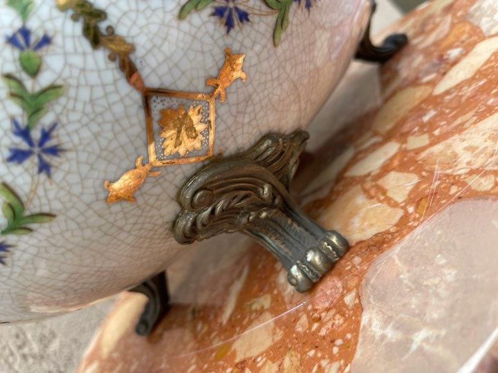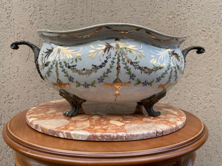 ЖАРДІНЬЄ ВЗІЗУНОК ІЗ КВІТАМИ З КОЛОСКАМИ, ПІДПИСАНИЙ КОРИЧНЕВИЙ ФАРФОР