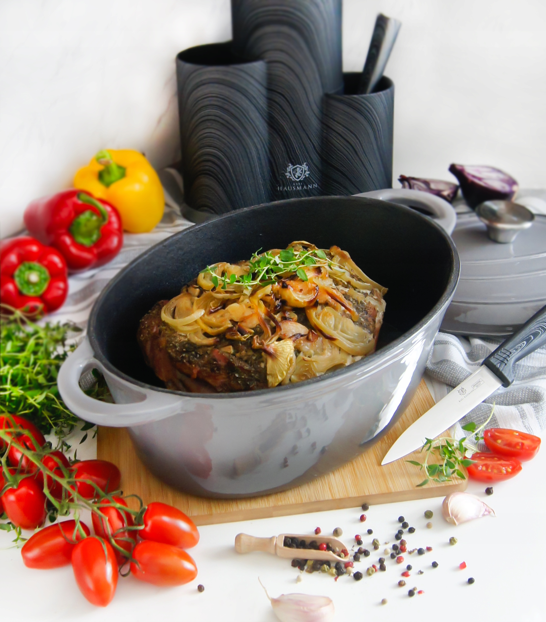 Идеально подойдет чугунная кастрюля с крышкой. не только для духовки, но и для всех типов плит - индукционных, огневых, газовых или керамических. Жаровня изготовлена методом литья под давлением из жидкого чугуна, не содержащего никаких химических добавок. Все качество изготовления влияет на его долговечность.