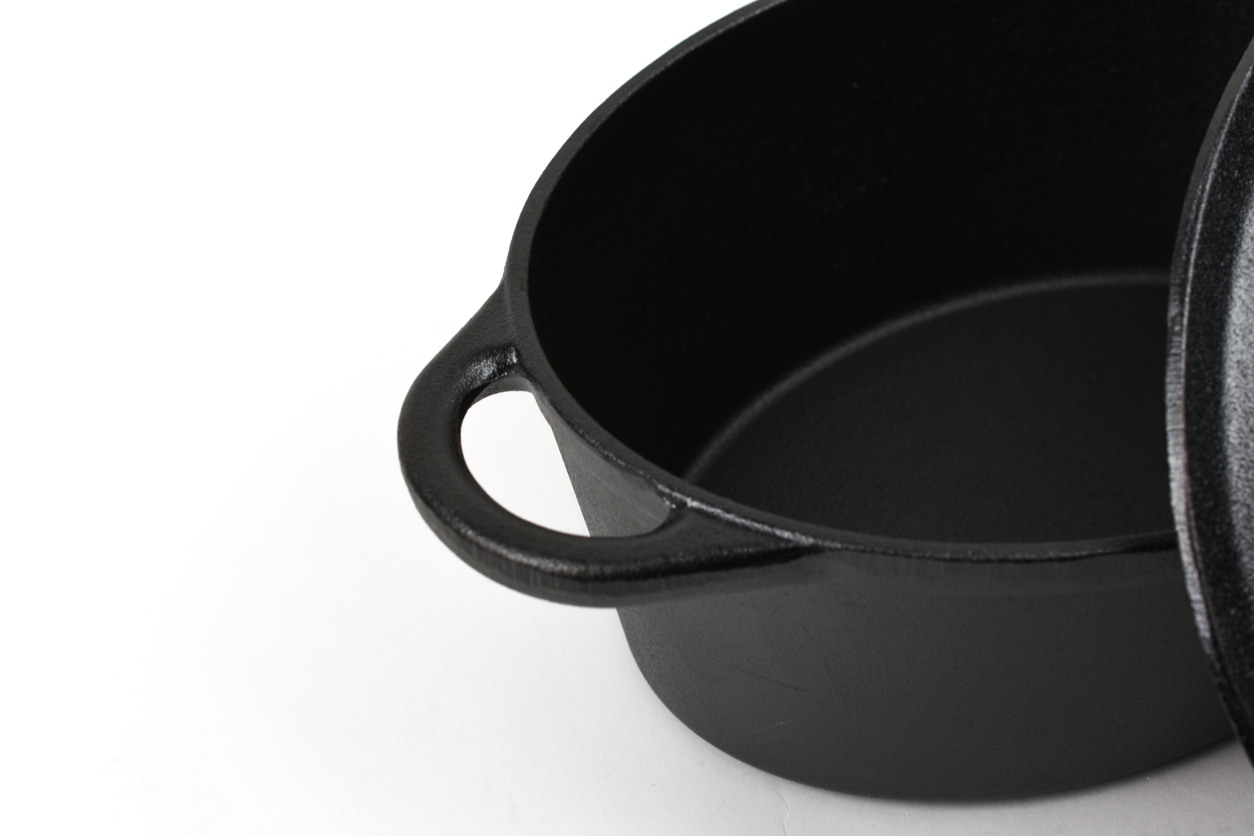 Идеально подойдет чугунная кастрюля с крышкой. не только для духовки, но и для всех типов плит - индукционных, огневых, газовых или керамических. Жаровня изготовлена методом литья под давлением из жидкого чугуна, не содержащего никаких химических добавок. Все качество изготовления влияет на его долговечность.