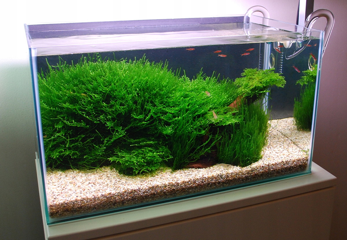 На сетку можно привить фрагменты мха и разместить на задней стенке аквариума, создав в аквариуме яркий зеленый фон.
