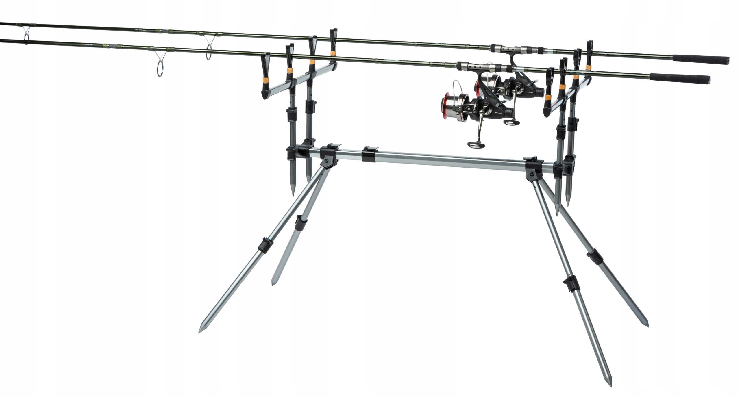 Очень устойчивая и прочная подставка для карпа изготовлена из алюминиевого сплава и рассчитана на 4 удилища с возможностью регулировки наклона, высоты и длины корпуса.