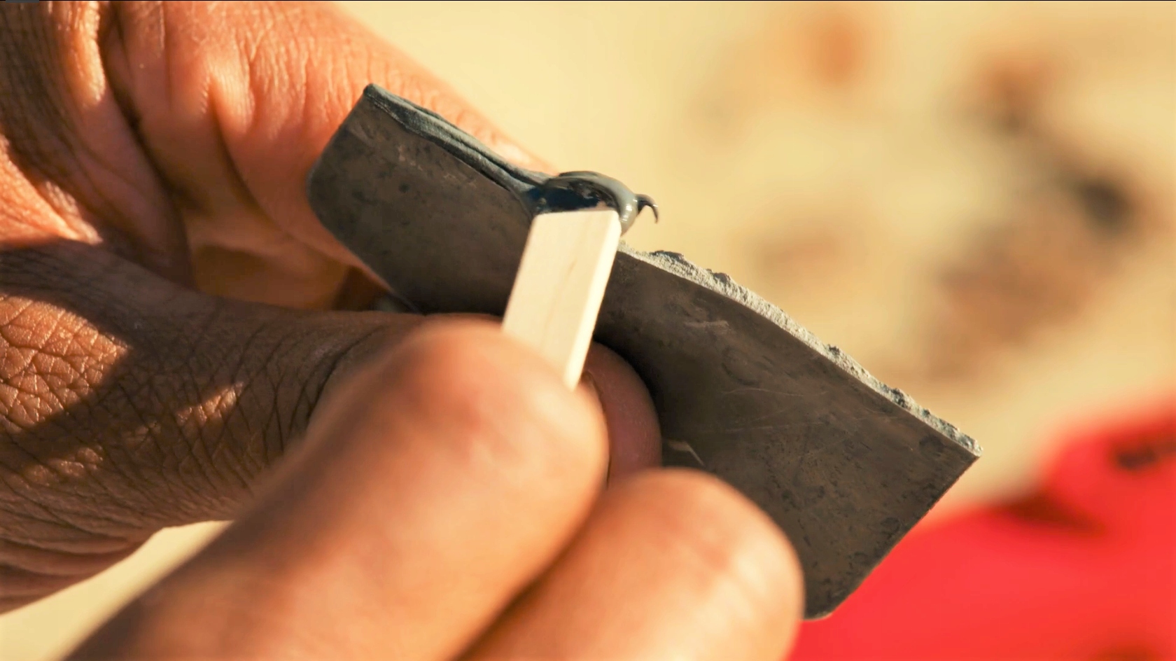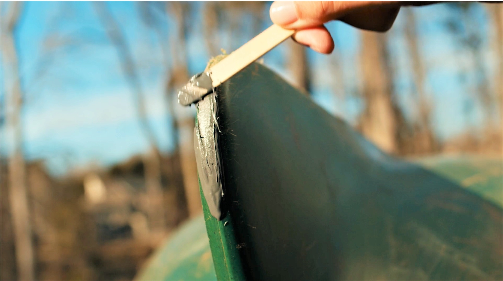 Нанесите ровным слоем подходящим инструментом. Придайте форму и отрегулируйте ее по мере необходимости, чтобы равномерно покрыть поверхность склеенной области.